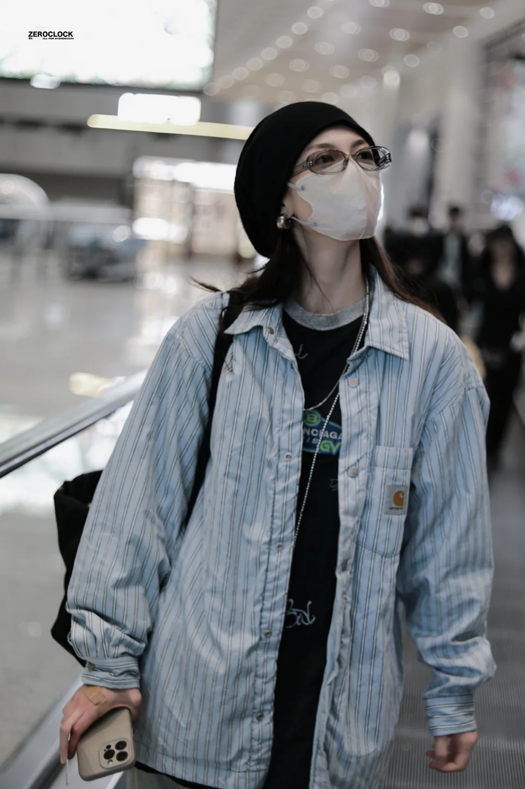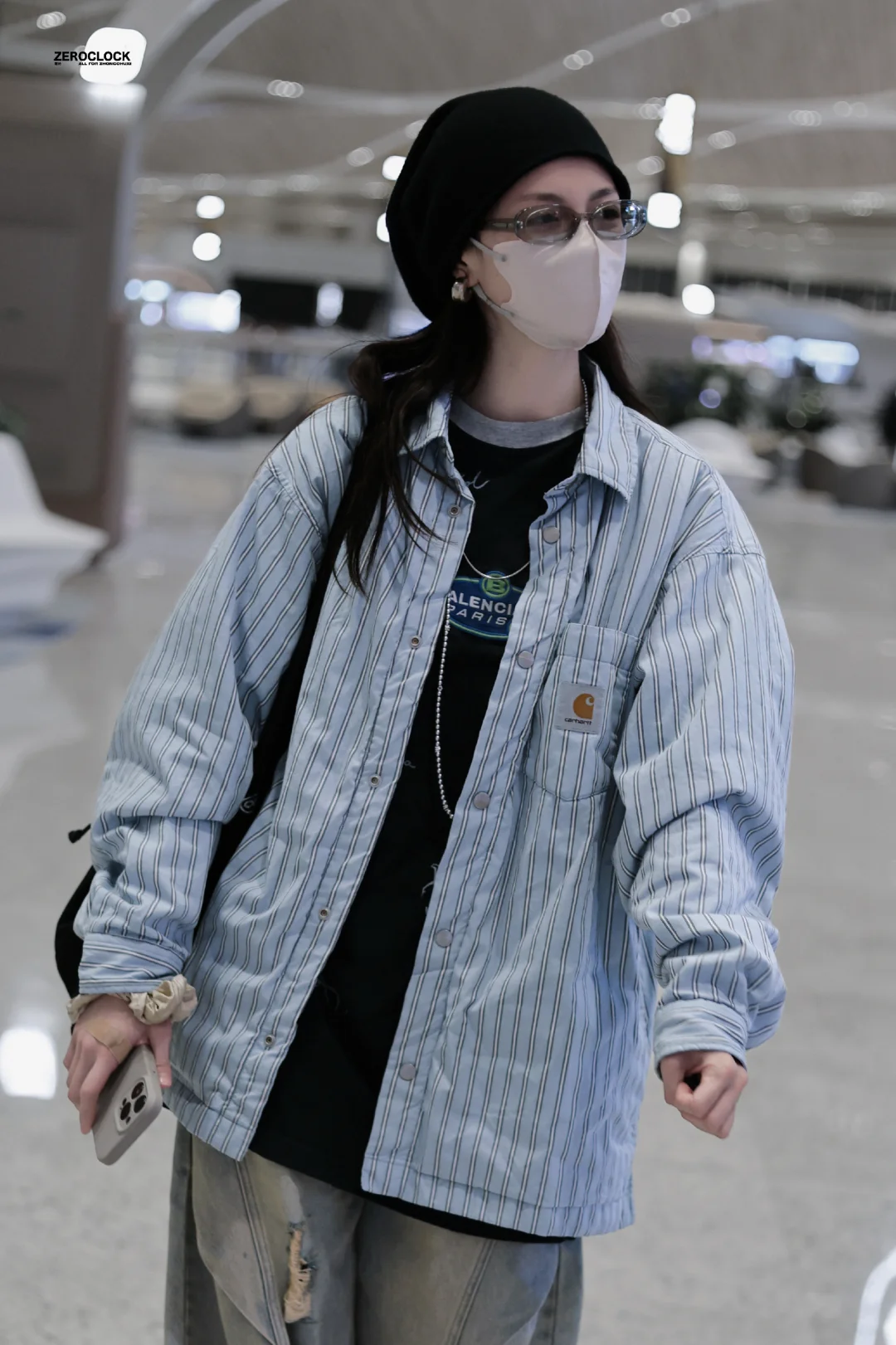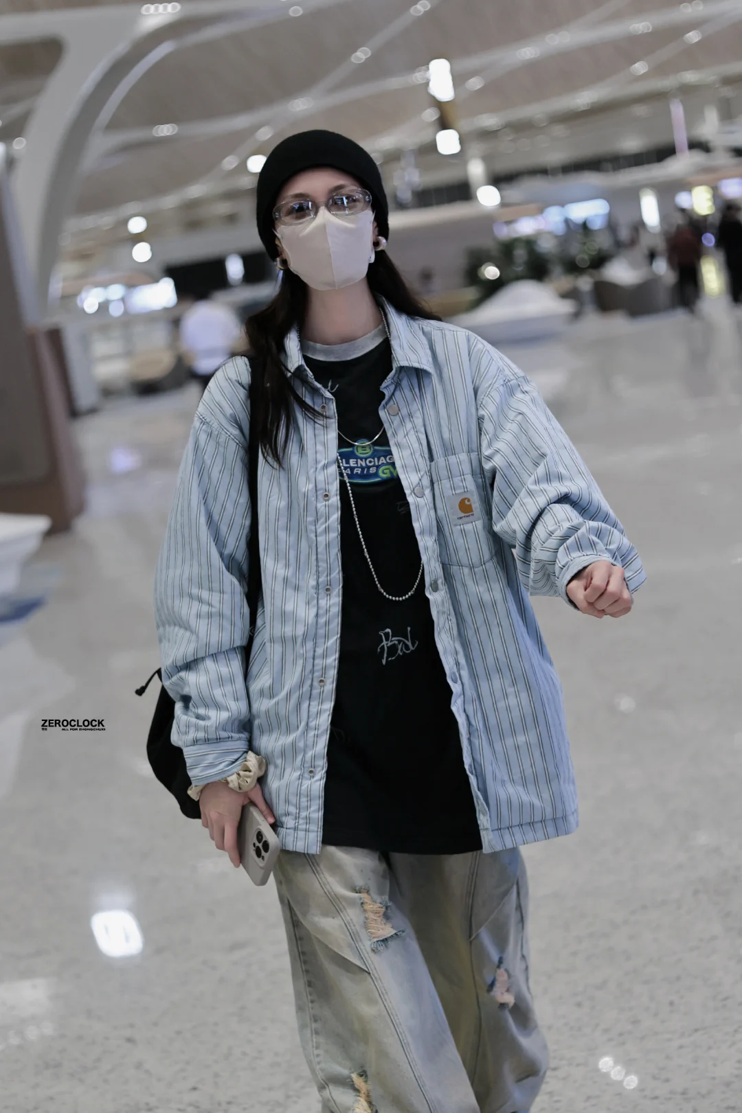 钟楚曦机场,她的审美真的很不错,这种帅气小男孩风穿搭好喜欢呀 图:ZEROCLOCK零時|钟楚曦