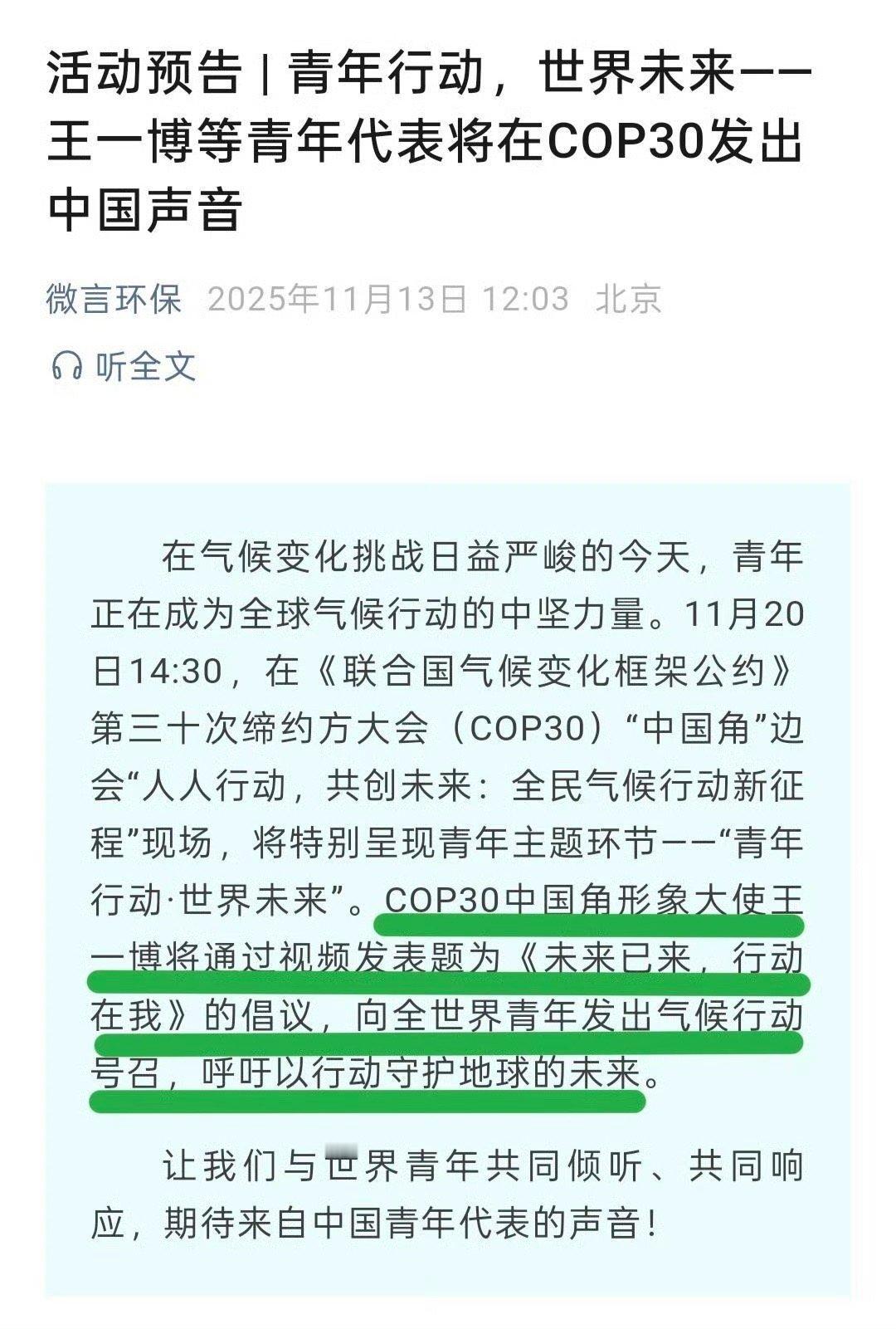 这几天又是喜事一个接一个。①全运会《气势如虹》响彻开幕式现场;②《探索新境2》上广电精品大会,快播出了③UGG回签全球代言人又+1,王一博代言商业价值一骑绝尘 ④王一博纪录片《寻护者》不仅上金鸡百花电影节光影远行公益活动⑤《巡护者》从5000个参赛作品中脱颖而出,获中国公益广告领域权威大奖黄河奖 ⑥王一博担任cop30中国角大使