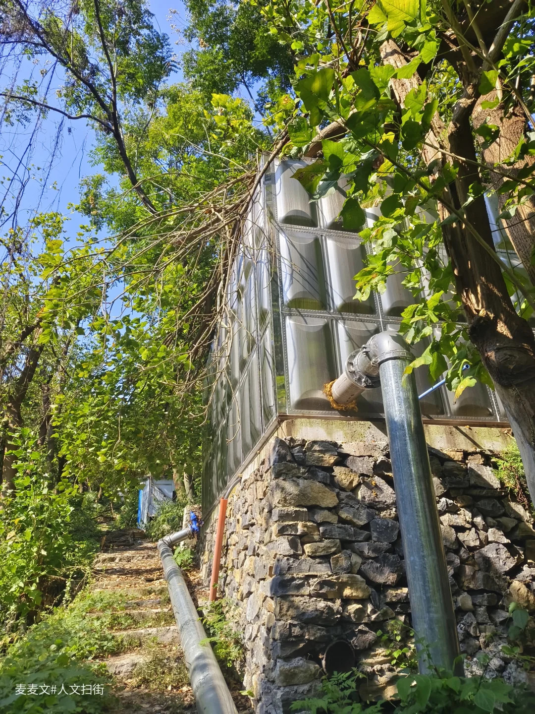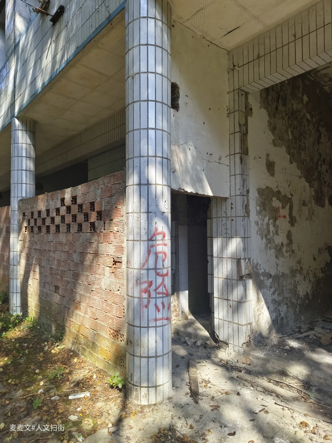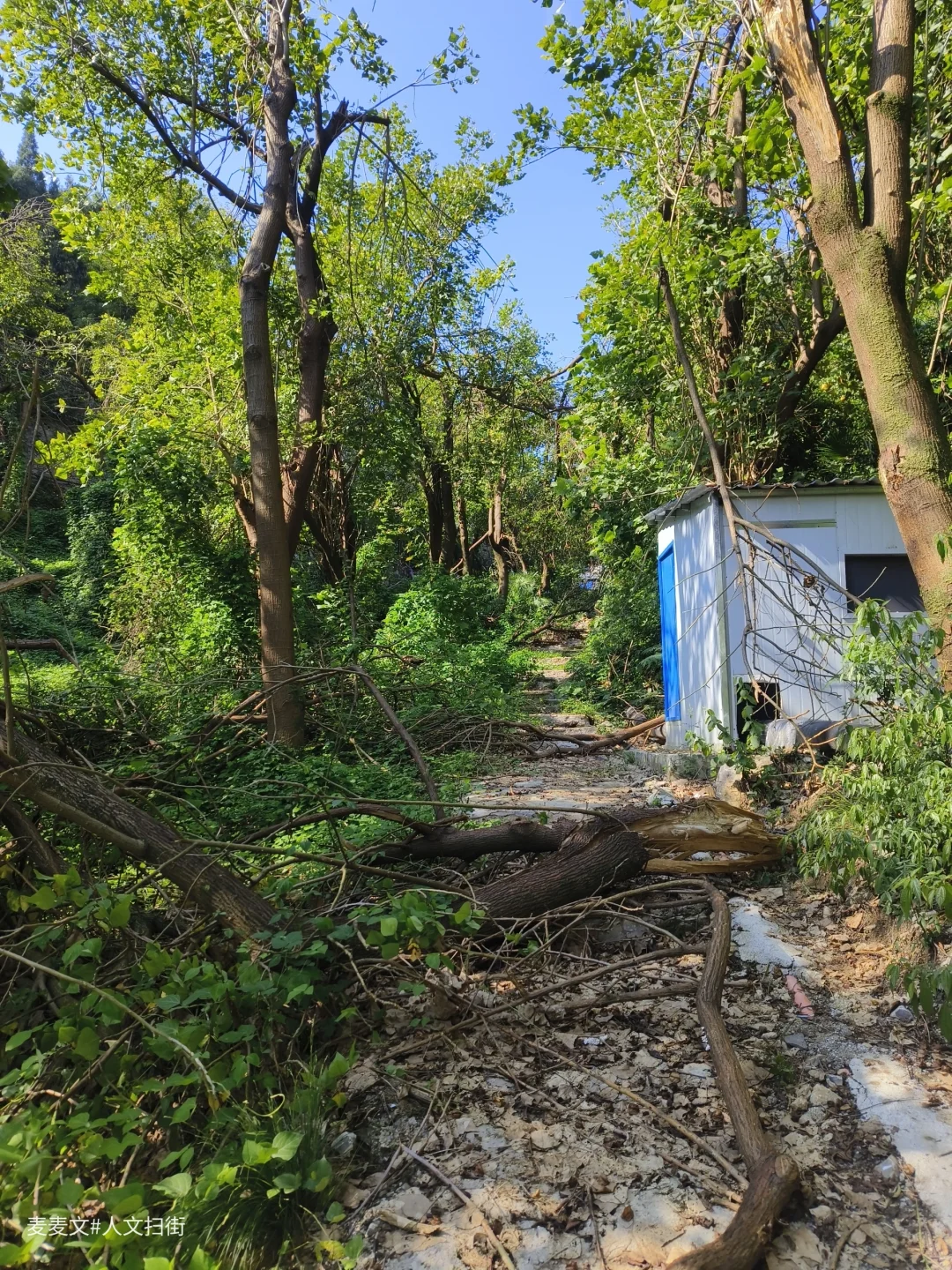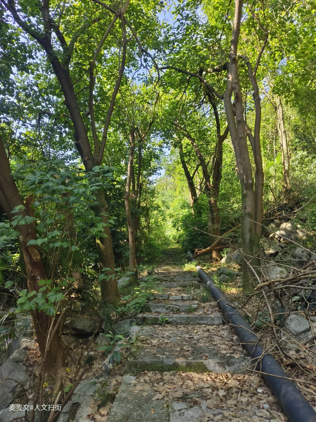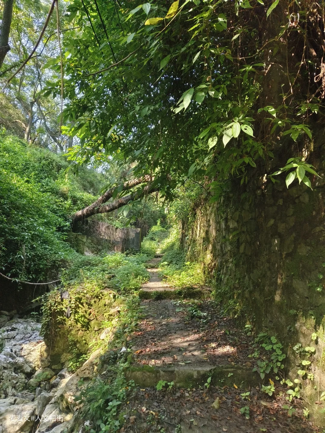沿着上山的路前行,目之所及,两旁的居民楼已然人去楼空,墙体斑驳,爬满岁月痕迹。可就在这废弃之中,自然力量蓬勃生长。藤蔓缠绕建筑,绿植铺满台阶,阳光透过枝叶洒下,光影交错,宛如绿野仙踪里的奇幻场景,又带着梦核世界的迷幻与疏离。