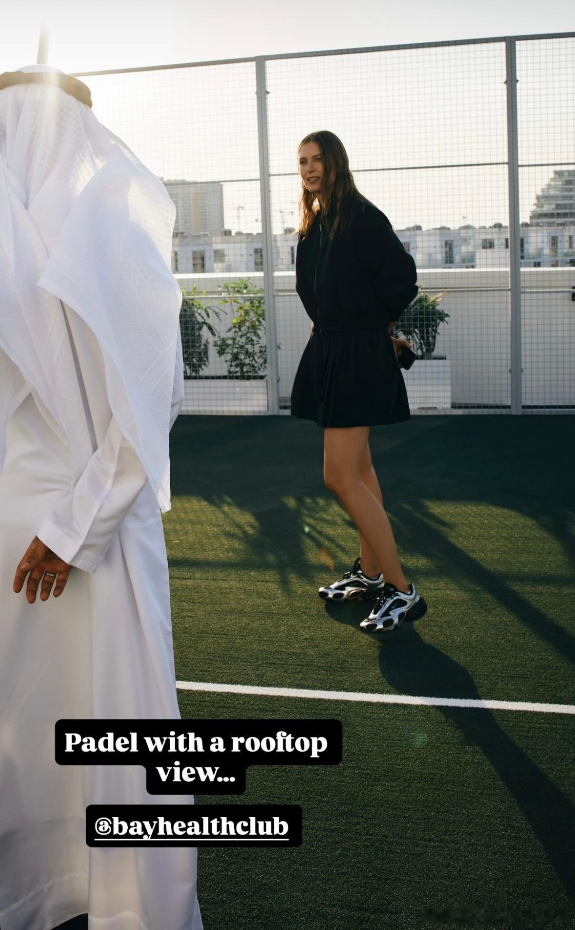 莎拉波娃!马不停蹄从葡萄牙里斯本感到了阿联酋迪拜!出席The Bay Health Club健康俱乐部的开店仪式,这地方有网球场、有板式网球场