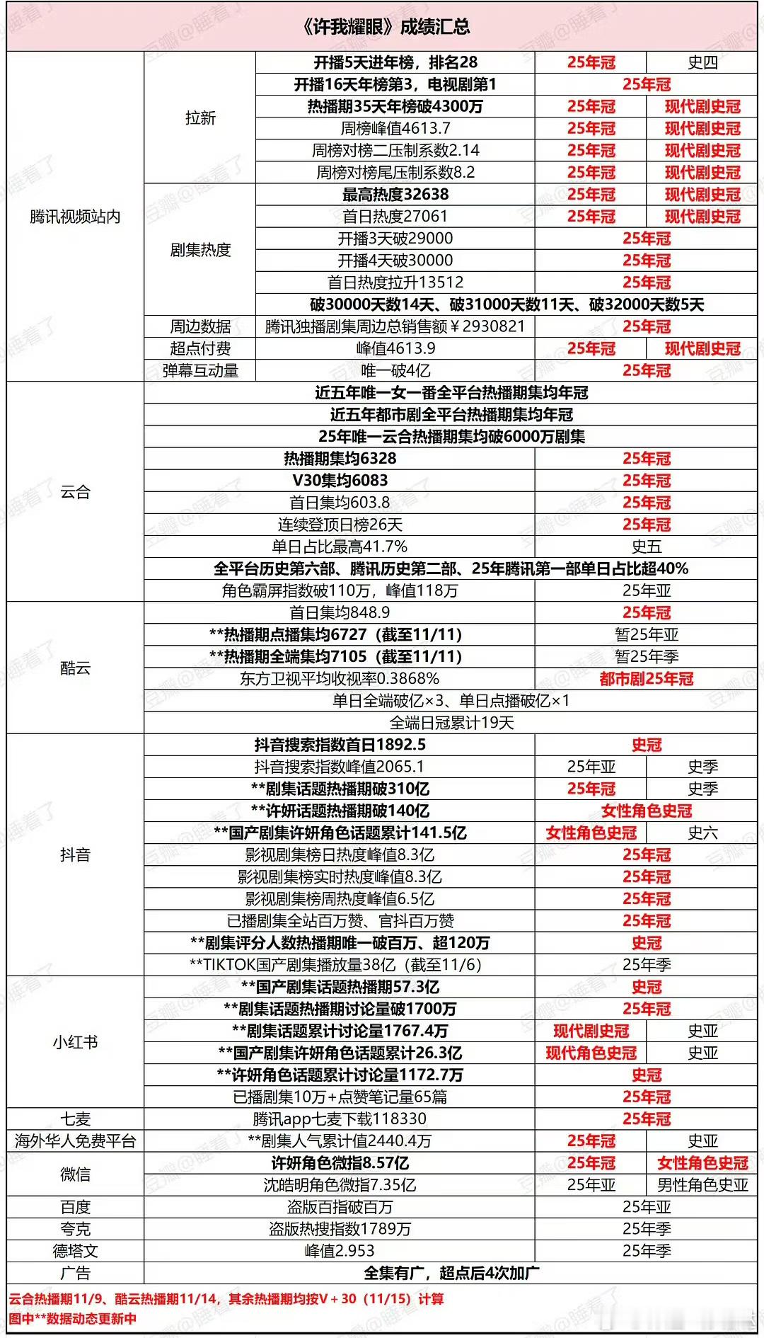 赵露思、陈伟霆《许我耀眼》成绩汇总