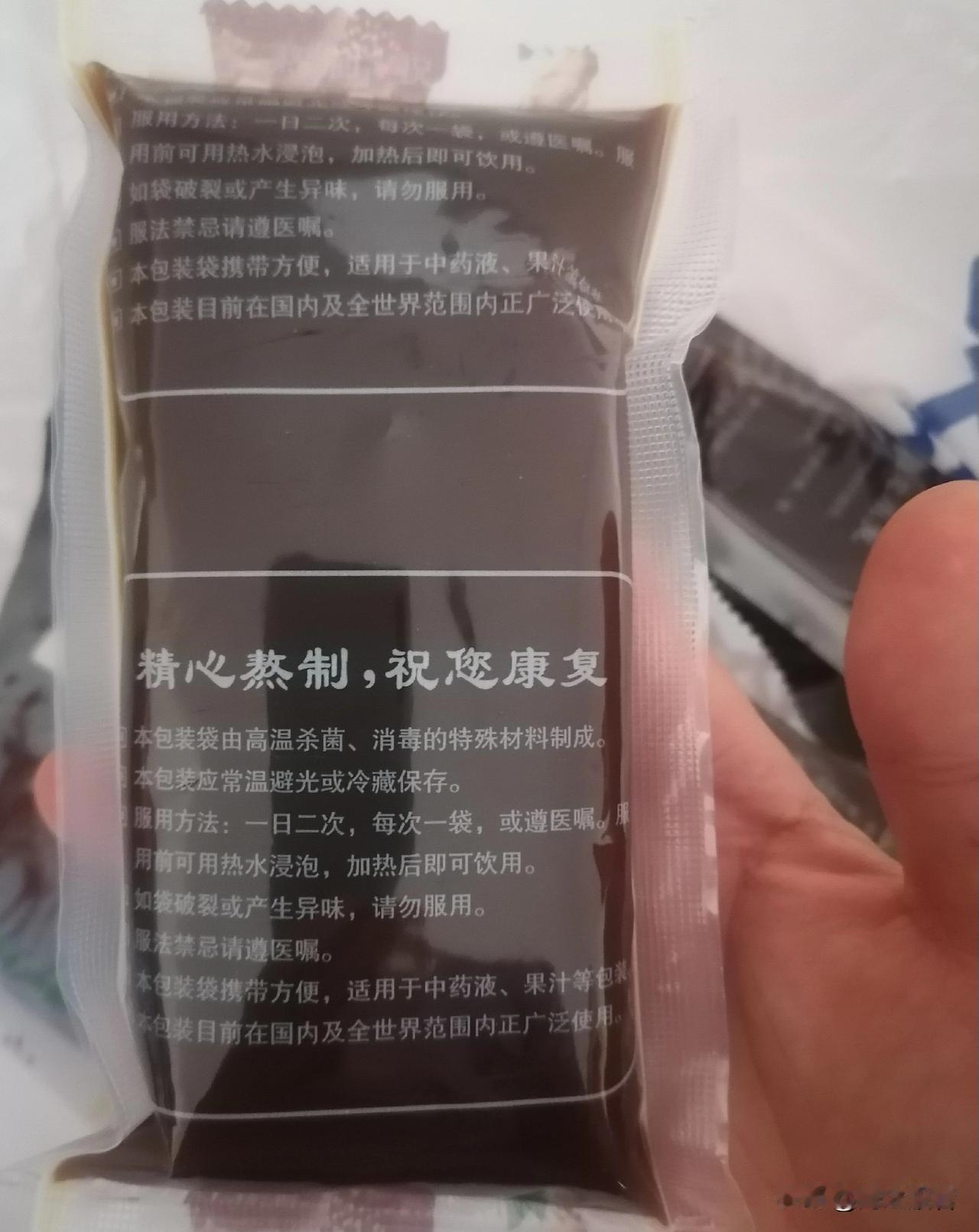刚出锅的中药包拿到手了,热乎乎的让我手心发烫。接下来就喝吧,像喝果汁一样大口喝,闭眼睛喝,一口气喝完,比果汁难喝多了,但良药苦口利于病,咱得承认,苦一下,好受一天也值得。