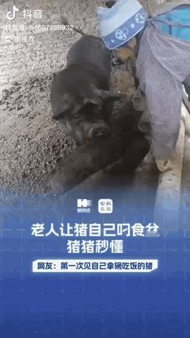 贵州,一老奶奶喂猪时,由于她手脚不方便,食盆又在另一旁,老奶奶就让猪把食盆叼过来,没想到猪秒懂就照做了。网友:第一次见自己拿碗吃饭的猪。 信息来源:微视点 视频可见,这头大黑猪见老奶奶来喂它时,显得非常兴奋,但因食盆在另一边,老奶奶又手脚不便,她便用勺子敲敲食槽,朝猪挥挥手,指着盆子说:“你把盆子叼过来嘛。” 没想到,这头猪就真的小跑过去,用嘴衔住食盆的边缘,摇摇晃晃地把盆子叼到了老奶奶面前,脸上还挂着期待的神情,真是令人惊讶。 视频一出,引起了不少网友的热议。 大家纷纷夸这头猪听话,表示“太聪明了!” 还有人调侃道:“这猪真够精的,简直比猴子还聪明。” 不少农村的网友也对此发表了自己的看法,认为这完全不是训练出来的,而是一种长期的默契。 有人留言说:“你天天喂它,喊它,它能听出你的语气,凶一点它会缩着,温柔点它就会愿意靠过来。” 其实,说起猪的智力,科学研究早已经证明,猪的智力水平差不多相当于三岁的小孩。 它们不仅能听懂简单指令,还能认出自己的主人,甚至能分辨主人的情绪。 国外的一些研究显示,猪能通过镜子找到藏起来的食物,这说明它们的理解能力非常高。 回到老奶奶和这只猪的故事,我们可以看到,老奶奶对猪的细心照料,和猪对老奶奶的“懂事”反应,展现了他们之间那种特殊的温暖互动。 老奶奶多年累积的情感,让这头猪不仅听得懂指令,还懂得如何满足老人的需求。 这让人不得不想,是否往往在日常的生活中,我们总是低估了那些看似“笨拙”的动物,实际上它们可能比我们想象的要聪明得多。 这件小事让我们重新审视人与动物之间的关系,对于那些生活在农村的人来说,和动物建立这种密切的联系并不是一件稀奇的事。 它们带来的不仅是生活上的帮助,还有心灵上的陪伴。 很多人看了这个视频后,也纷纷分享了自己养动物的故事,表明这头“懂事猪”值得好好善待。 总之,这个视频不仅仅是可爱的瞬间,它传递的信息更深刻,让我们意识到动物的聪明与灵性源自于我们之间的互动和理解。 希望这种温暖的故事能够让更多人关注到人与动物的关系,理解他们的情感与灵性。 其实,猪只是不会说话,但是听的懂人说的话,万物皆有灵,这么听话的猪好好善待它。