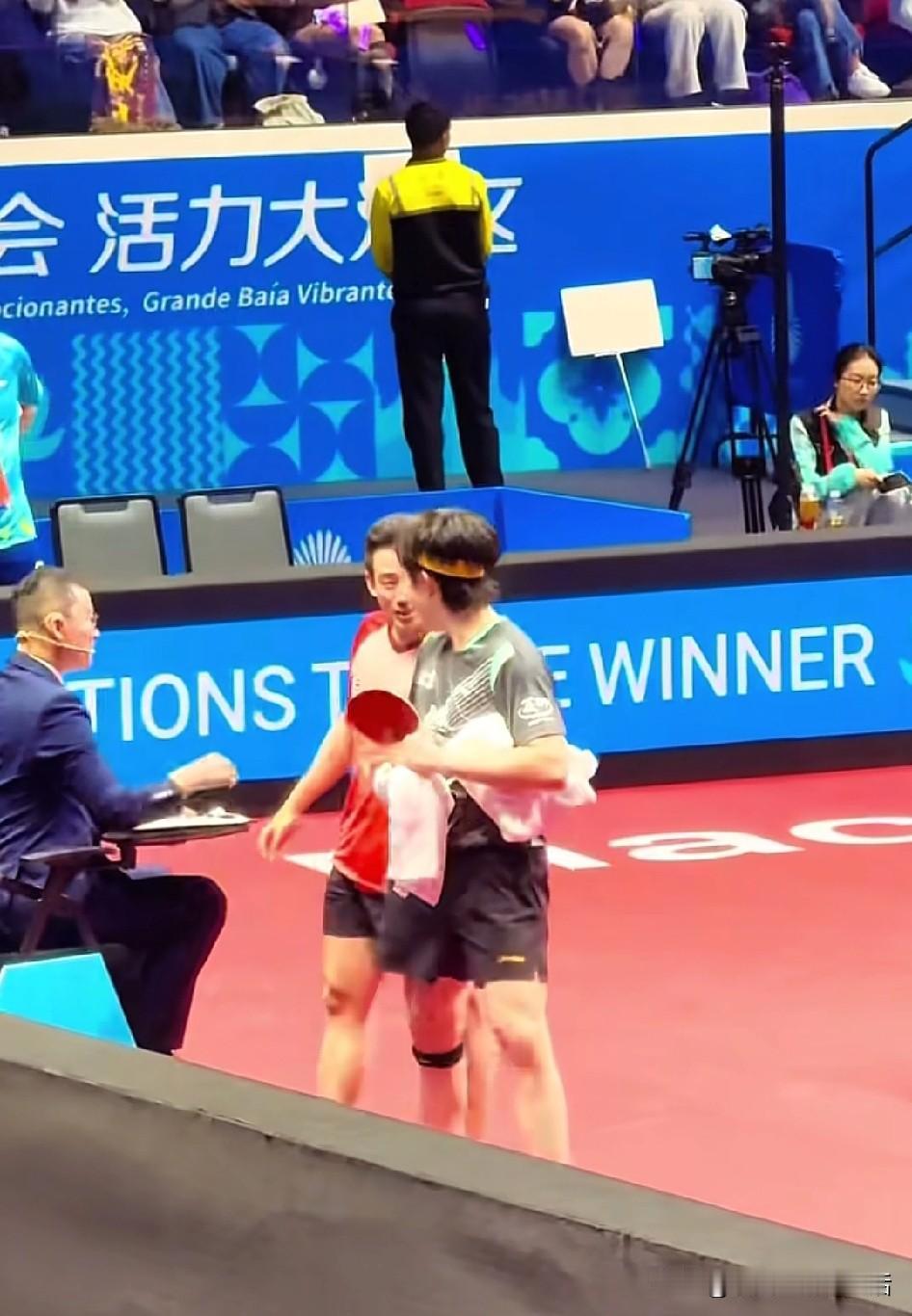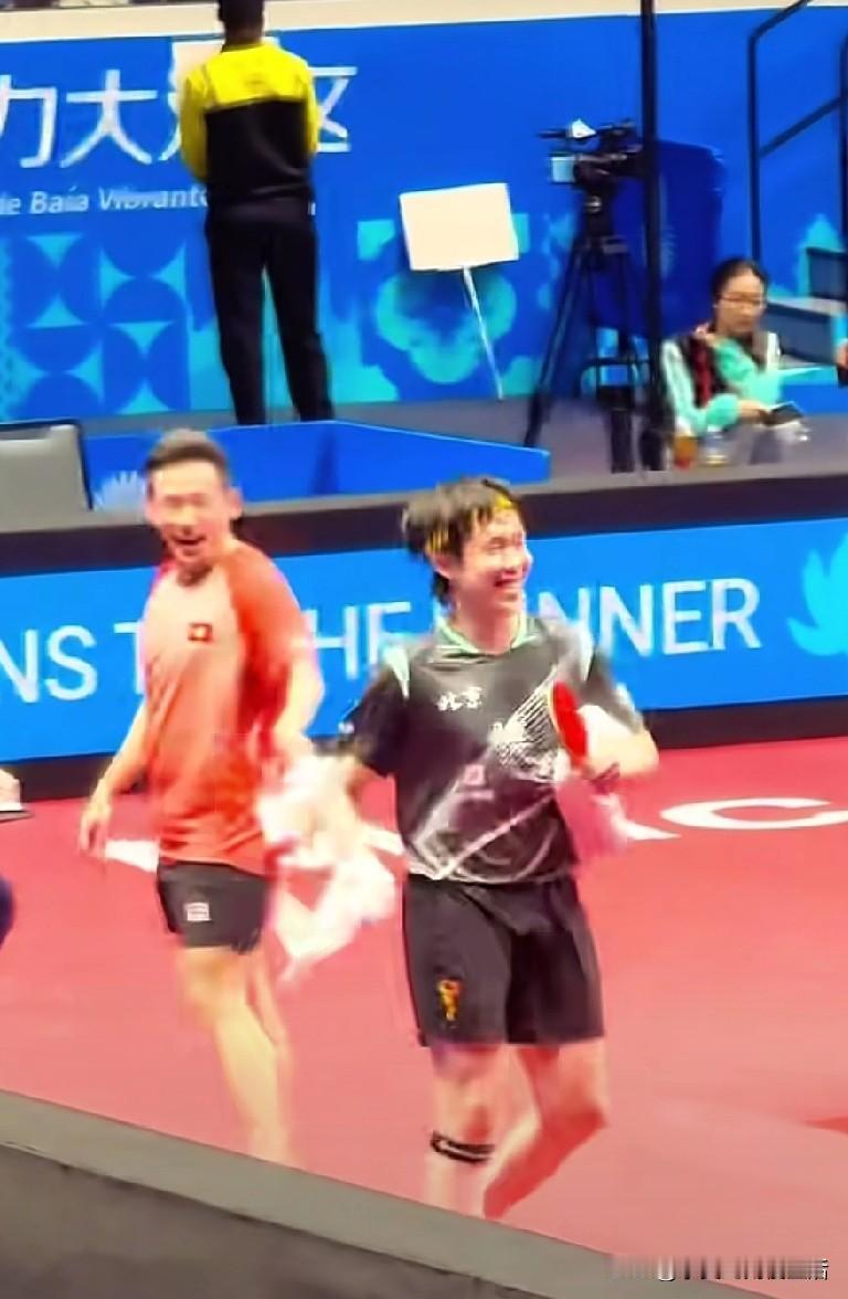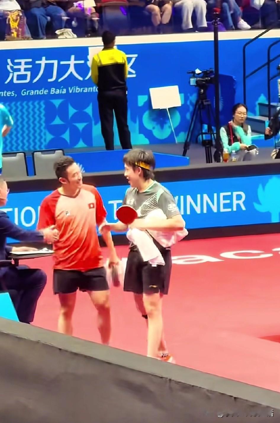 他们两个比赛结束说的啥? 黄镇廷歪头问王楚钦你是不是控分了?因为王楚钦赢的四局比分全部是11:5。黄镇廷赢的三局全部是11:9。黄镇廷歪头问王楚钦,王楚钦傲娇的笑了。 王楚钦笑着说黄镇廷,你是真厉害,每到大赛你就打得特别的好。黄镇廷也说,平时比赛都是他压着我打,今天我也给他上上量。 挺喜欢黄镇廷和王楚钦的,每次他们两个在赛场相遇,都会擦出来不一样的火花。全运会