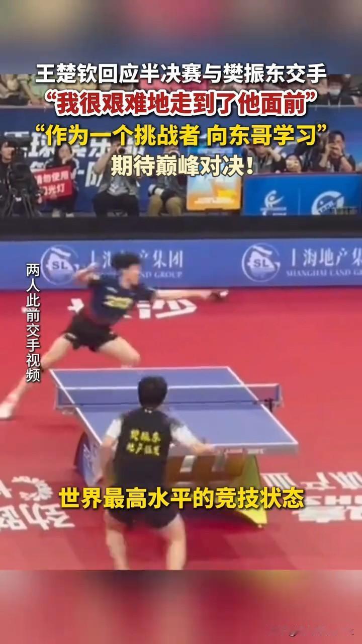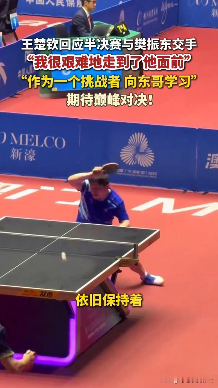 王楚钦采访说的话还是有道理,樊振东一直保持最高的竞技水平[赞] 全运会一直都比奥运会更难,因为是一群世界冠军,奥运冠军争一个全国冠军,世界冠军容易,全国冠军不容易 所以对于网友说的王楚钦和樊振东的比赛,是会师,王楚钦说不是会师,他很艰难的走到东哥面前,而樊振东依然保持最高水平,他作为一个挑战者,向东哥学习 确实,樊振东的水平有目共睹,特别是看过了樊振东对张本那次之后,你会觉得樊振东就是神