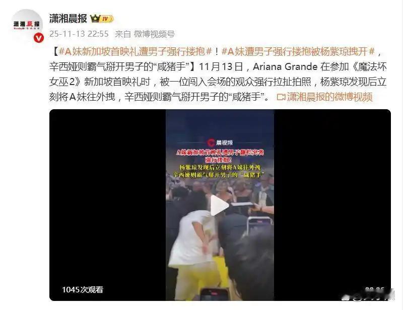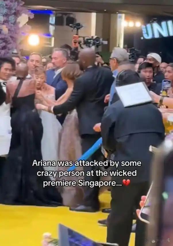 2秒失守!红毯变战场,A妹被扑倒谁来救? 11月13日,新加坡红毯。镁光灯闪烁,A妹刚露笑容,一名男子翻过护栏直扑而来,一把搂住她往怀里拽。她整个人被带歪,高跟鞋踉跄,几乎跌进人群。现场尖叫声四起,保镖却像慢了半拍。 杨紫琼就在旁边。她反应极快,一把拽住A妹胳膊,硬生生从那人怀里抢了回来。辛西娅·埃里沃也冲上来,直接掰开那只手,眼神像刀。视频里看得清清楚楚,那男的嘴角还带着笑,仿佛在演戏。没想到他早有前科,水果姐、盆栽哥都曾被他突袭。专挑国际活动露脸,一次两次是意外,次次得手就是漏洞。 红毯本该是星光璀璨的舞台,却成了某些人肆意妄为的猎场。杨紫琼挡在前面,辛西娅站在中间,三个女人站成一道墙。高定礼服挡不住恶意,姐妹的肩膀才最踏实。这世道,凭什么总要她们自己护自己?