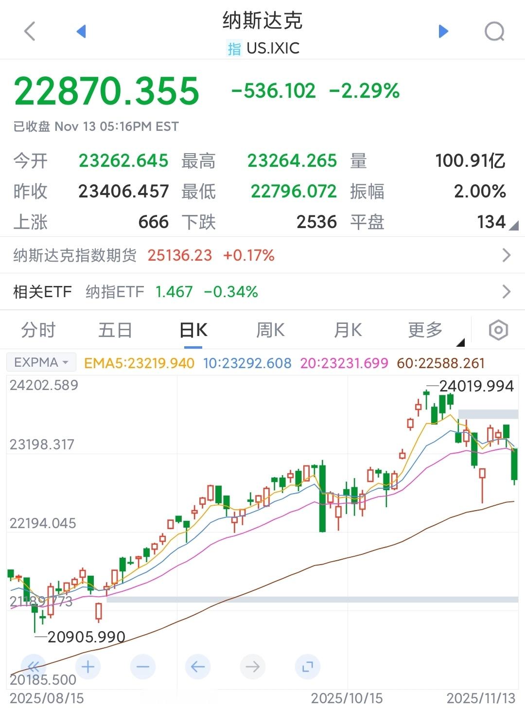 美股大跌,道指昨还新高,纳指跌两周了。AI故事没新意了道指是30个成分股,其中英伟达是明显的AI股,微软和亚马逊捆绑AI没那么严重,苹果不算AI股了。主要的AI股在纳指,之前炒作大涨的不少,这些天回调比较多。道指回调不多,纳指明显更弱。现在AI故事已经讲到耳朵听出老茧了。再怎么讲,业界也还是心里打鼓,巨额投入怎么赚钱?目前还是继续大投数据中心,但是没人能解释赚钱回报的事,逻辑没有闭环。美股里钱还是多,美元美债不靠谱,资金还是炒美股。估值越来越高,泡沫越来越大,巴菲特现金越来越多。