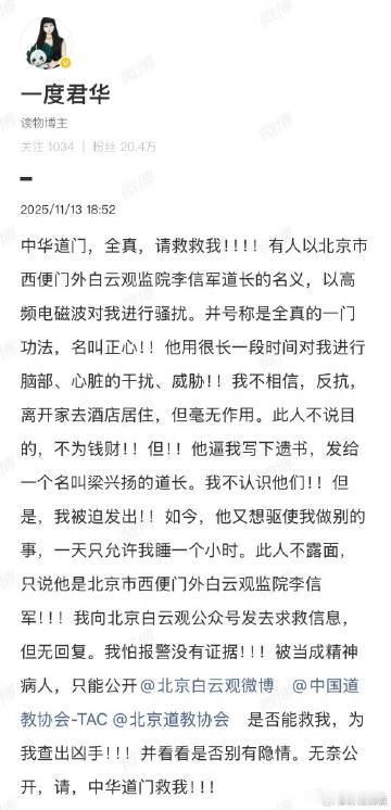 星落凝成糖、不醒作者一度君华发文求救,这是怎么了?她今天中午还发文要讲述一下自己消失的日子里发生的传奇经历。不过我之前知道她还是因为宁静……