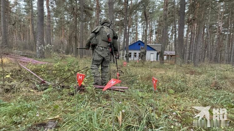 俄罗斯库尔斯克州:参与排雷排爆工作的朝鲜人民军军人。