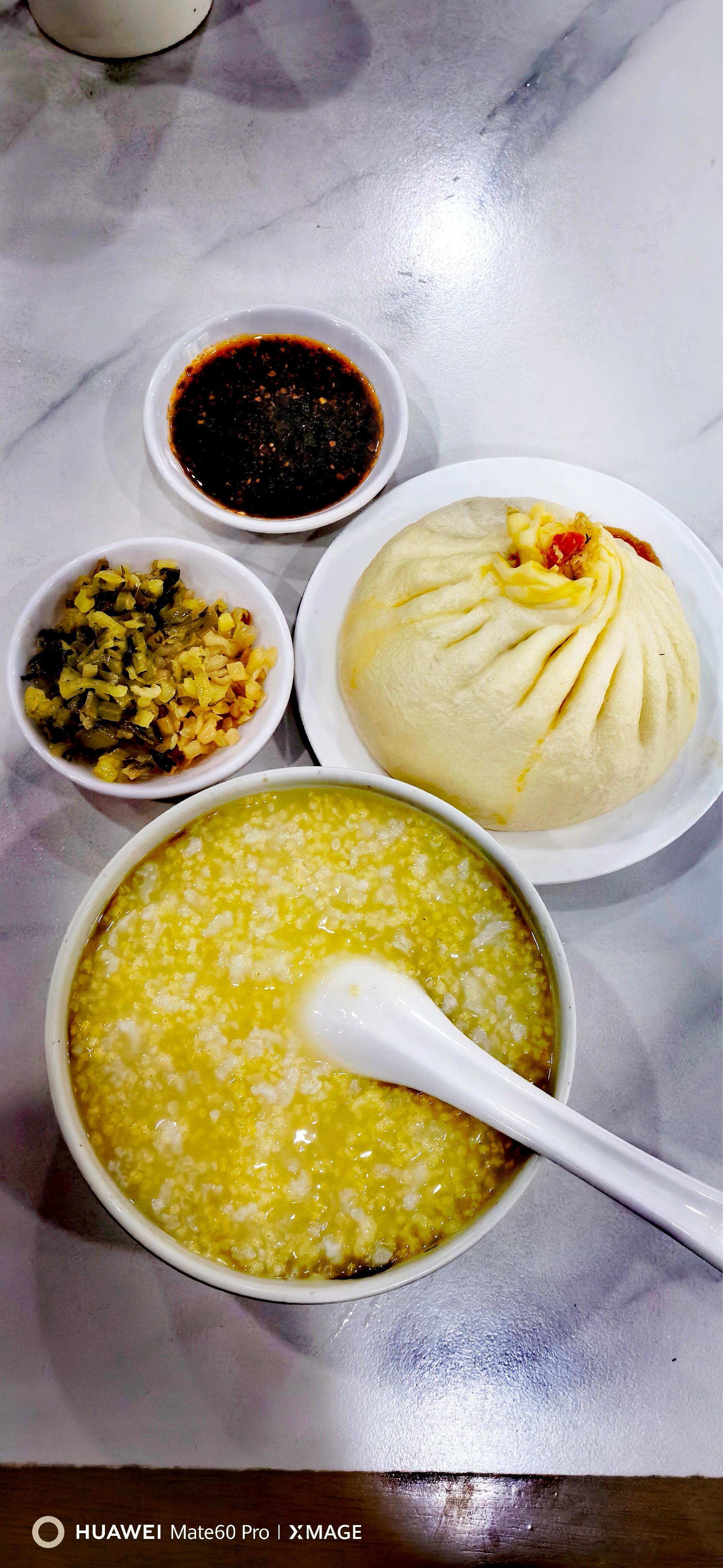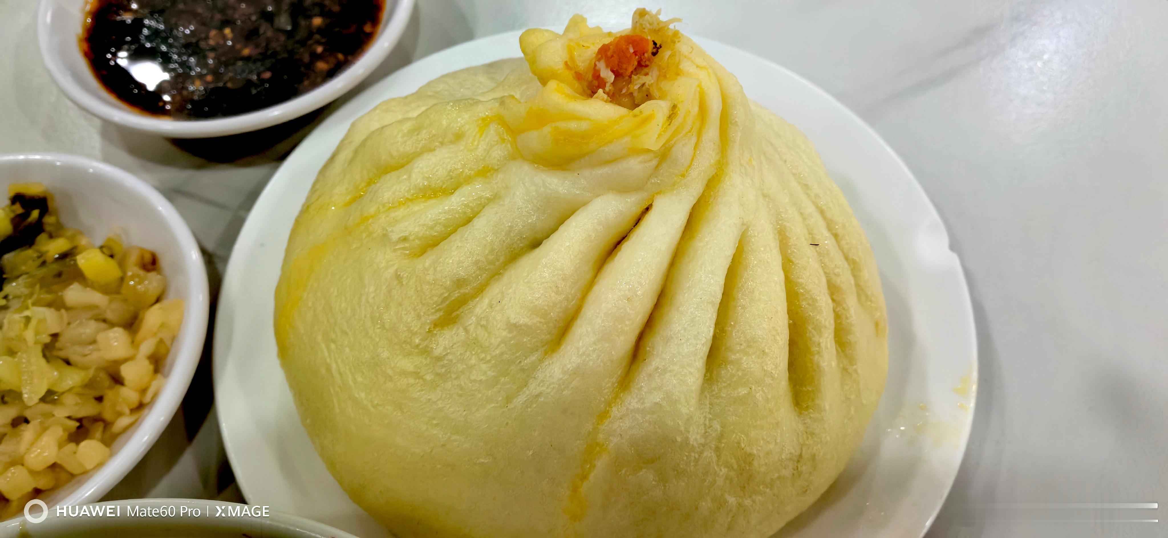 醉酒后的第一餐必须是粥和小咸菜才行。蟹黄包料足。