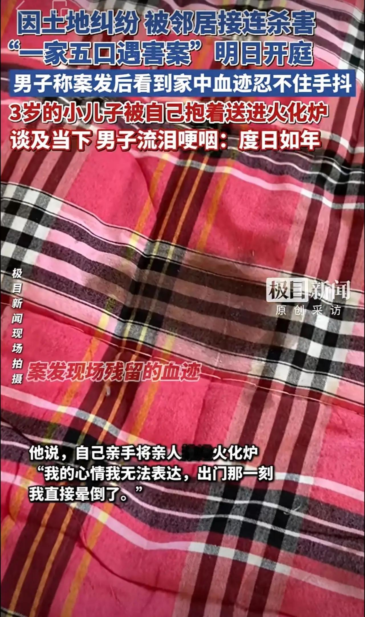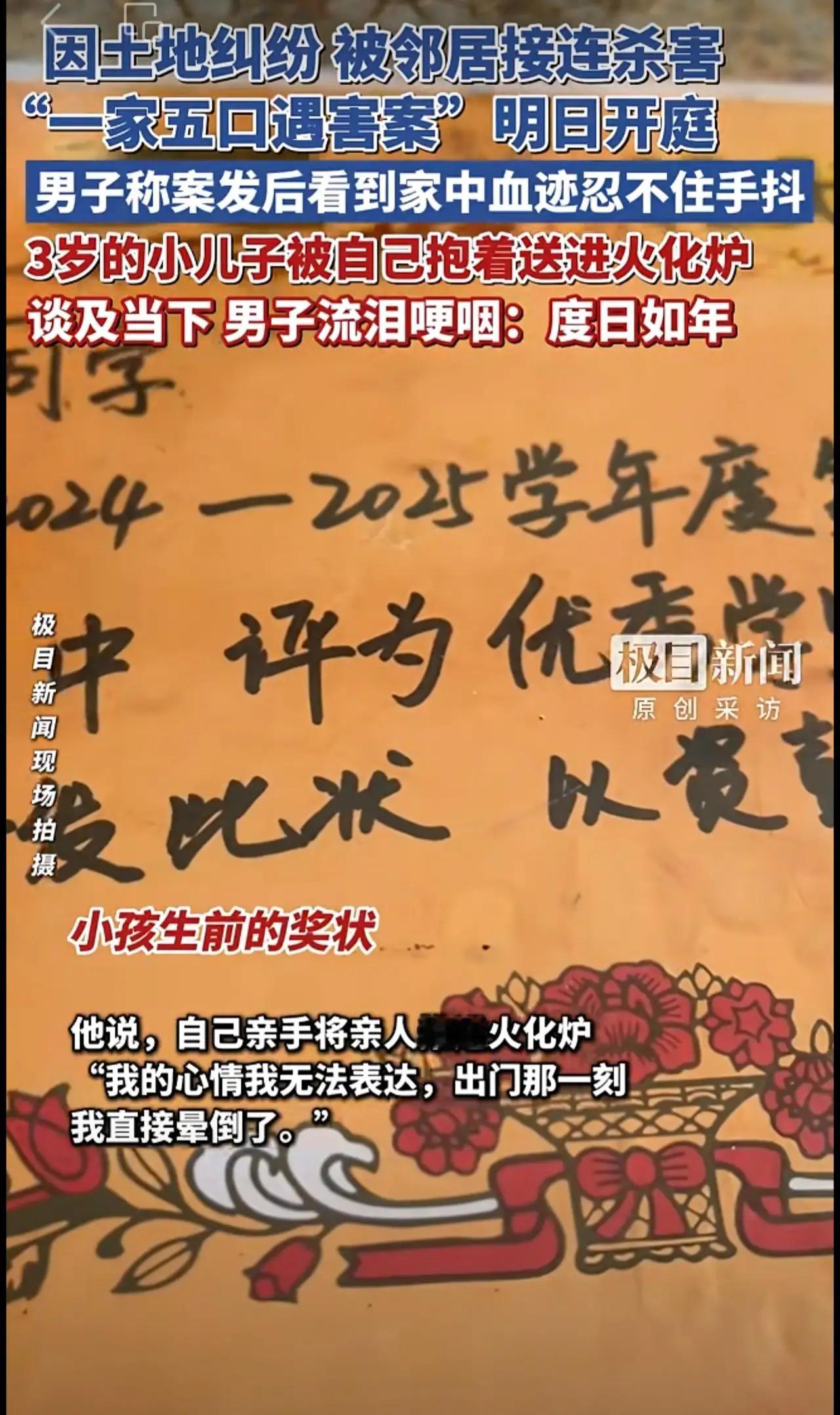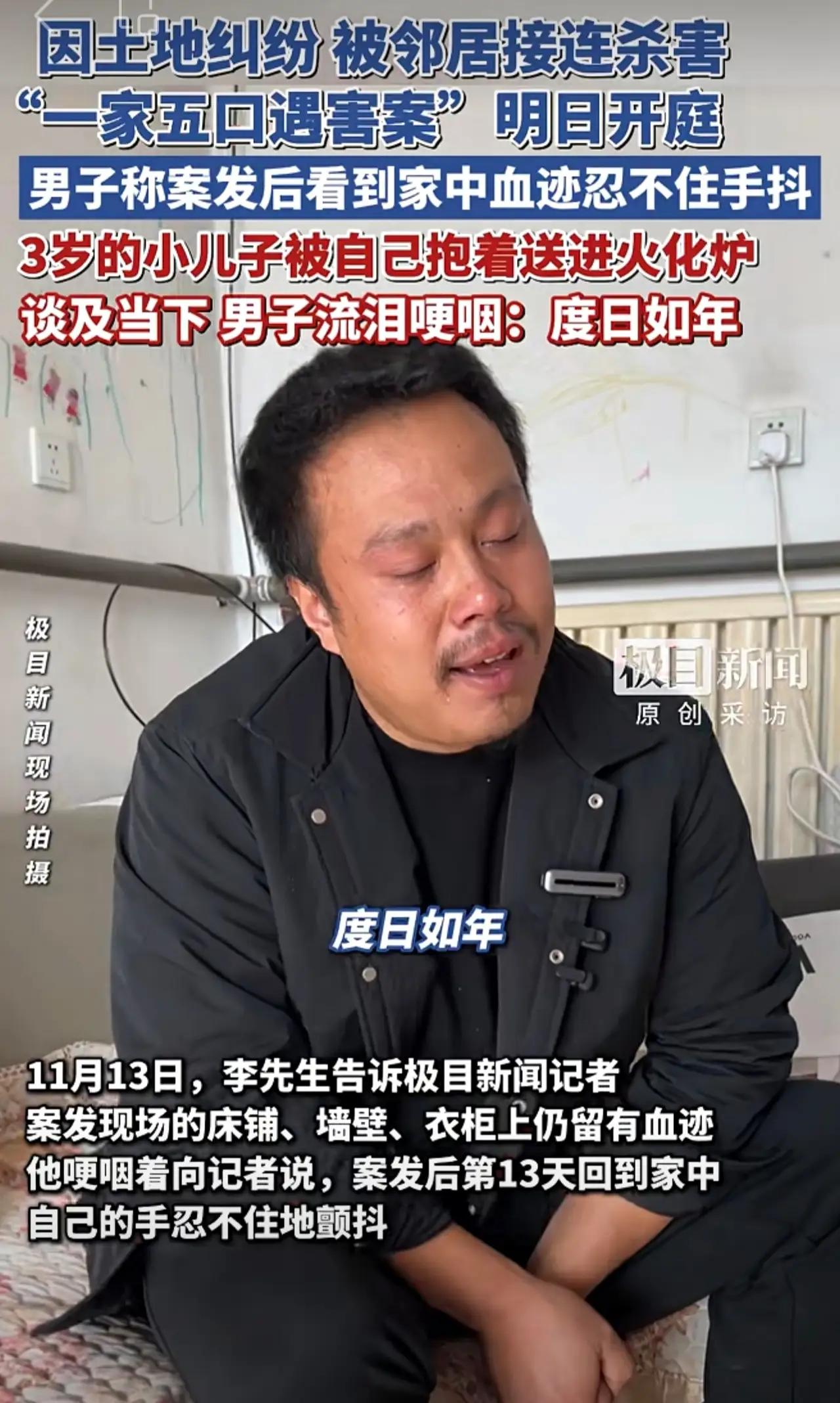 “一家五口遇害案”明日开庭,男子称案发后看到家中血迹忍不住手抖,3岁的小儿子被自己抱着送进火化炉,谈及当下,他流泪哽咽:度日如年。 面对这场令人心碎的家庭悲剧,我们不禁深思:生命的脆弱与无常,究竟在提醒我们什么?一个普通家庭的悲剧,却引发了社会的广泛关注和深刻反思。男子的每一句话都像是一记重锤,击打在每一个有温情的心上:“度日如年”,这不仅仅是他的感受,更是无数家庭在灾难面前的真实写照。 在这个快节奏的社会,许多人习惯了追求物质的丰盈,却忽略了最珍贵的东西——家人的陪伴与关爱。或许,这场悲剧告诉我们:生命无常,任何时候都不能掉以轻心。家庭的温暖不是理所当然的,它需要我们用心去守护,用爱去呵护。我们常常在忙碌中忽略了身边人的情感需求,直到失去,才明白什么才是真正的宝贵。 更令人心碎的是,男子在讲述中流泪哽咽,那份痛苦、那份无助,令人心碎。我们或许无法改变已经发生的事情,但可以从中汲取教训——珍惜当下的每一刻,关心身边的人,不让遗憾成为永远的痛。 这起案件,也再次引发社会对家庭安全、心理健康的关注。家庭的和谐不仅仅是表面上的平静,更需要我们每个人用心去经营。我们不能让冷漠和疏离成为家庭的主旋律,而应用爱与理解筑起一道坚不可摧的防线。 让我们以这场悲剧为警钟,反思自己,关爱家人,守护那份脆弱而宝贵的幸福。生命短暂,爱却可以长存。愿逝者安息,也愿每个家庭都能在爱中找到力量,走过风雨,共迎阳光。男童遭致死案 深圳遇害孩子 祖孙三人被害案