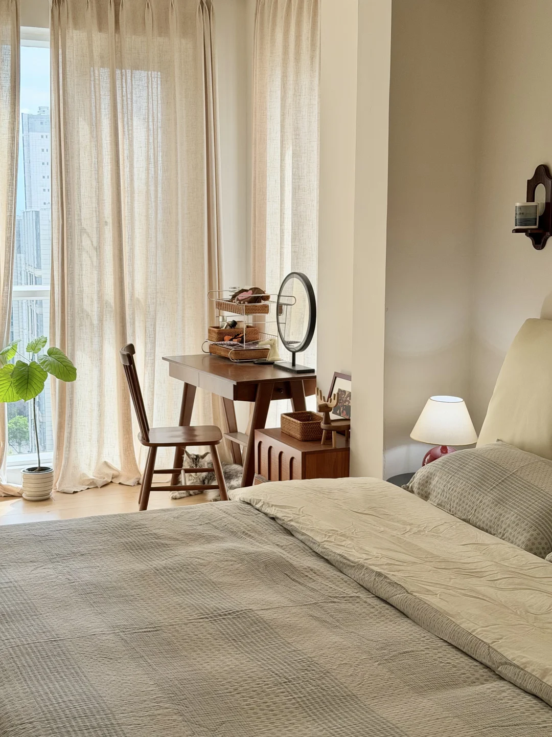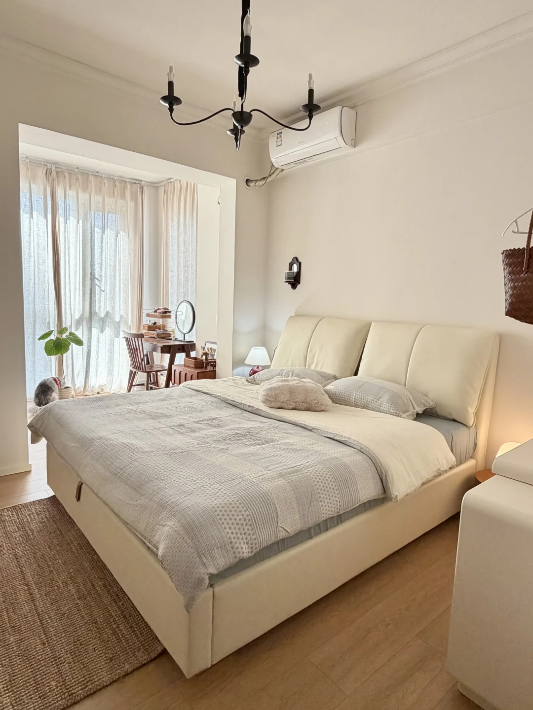 整床还是齐边设计,横向也节省不少空间,大大释放了过道空间,真的很适合小户型的卧室!