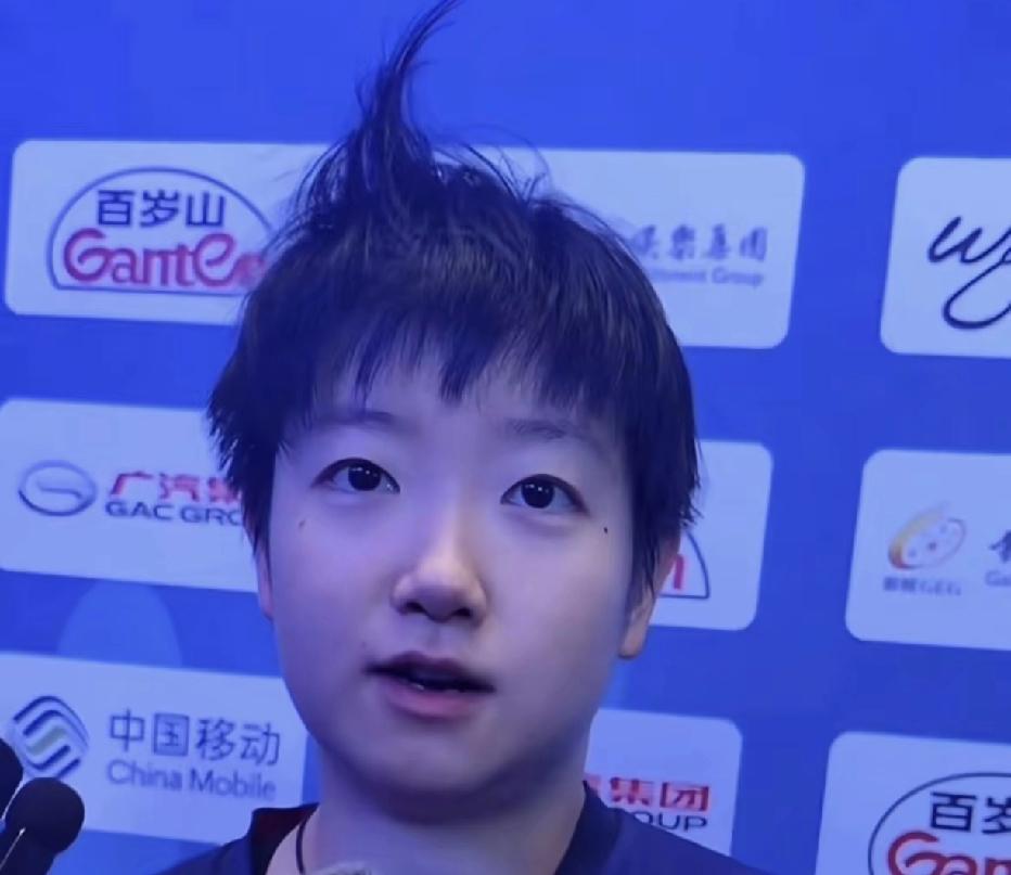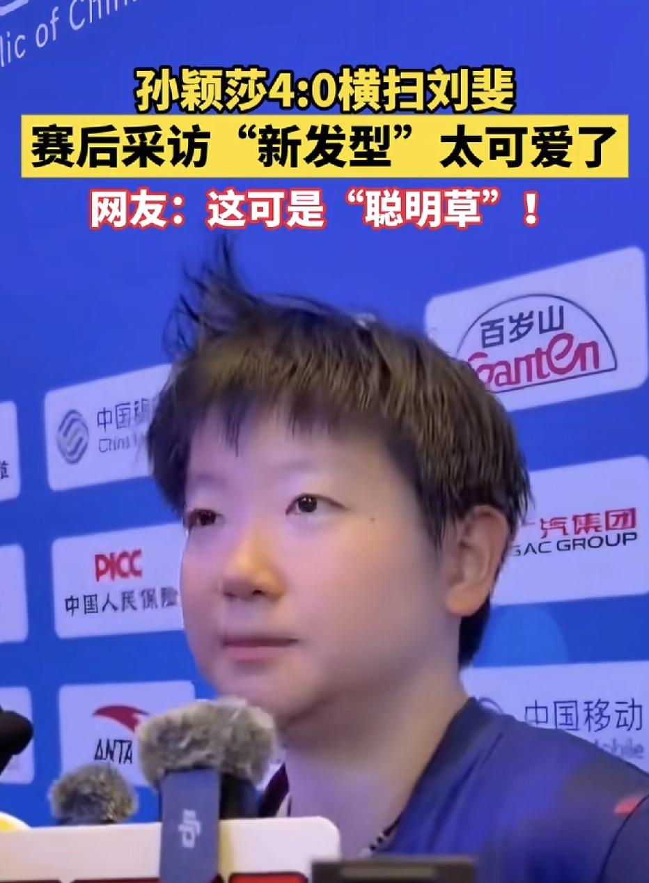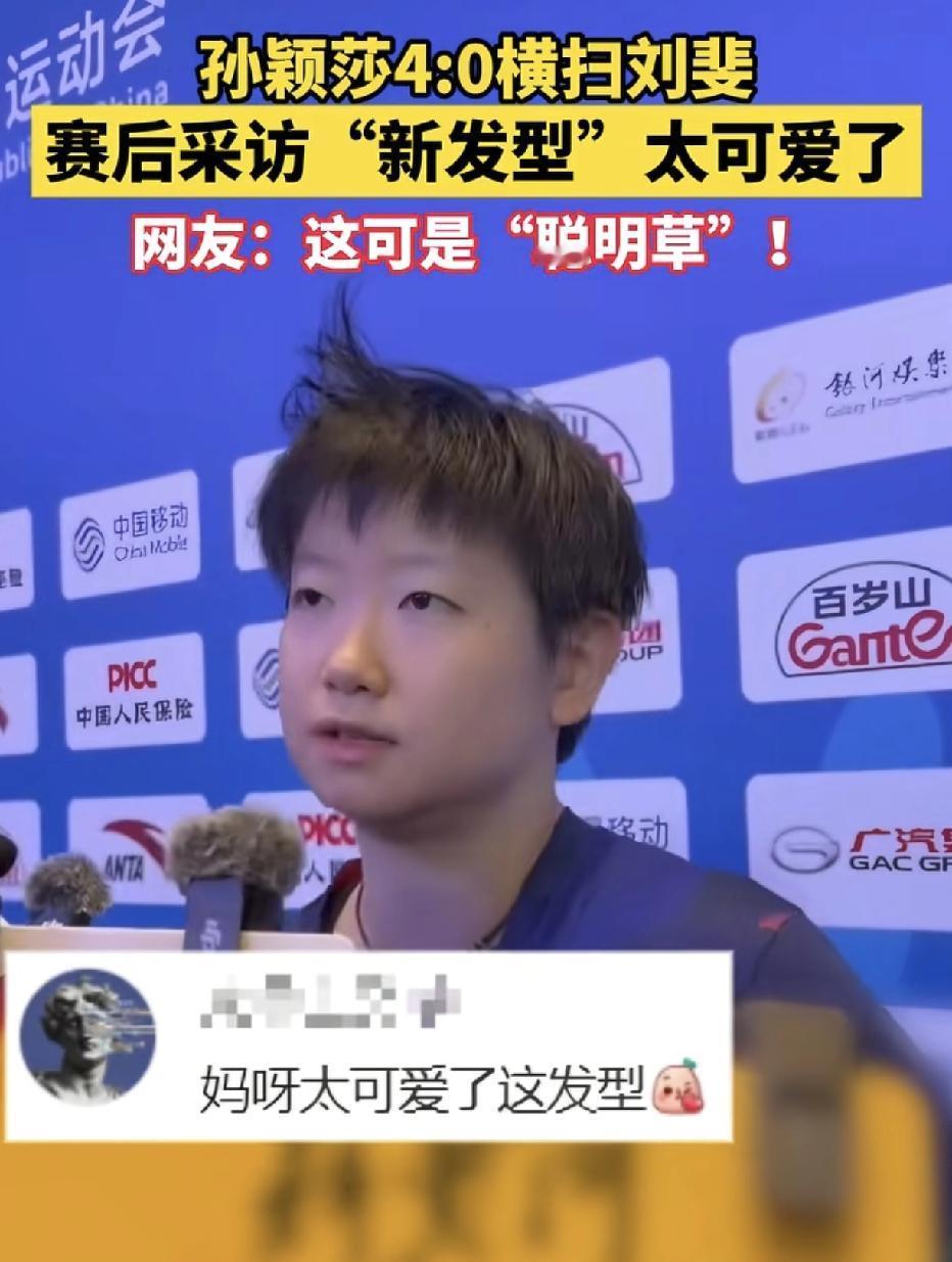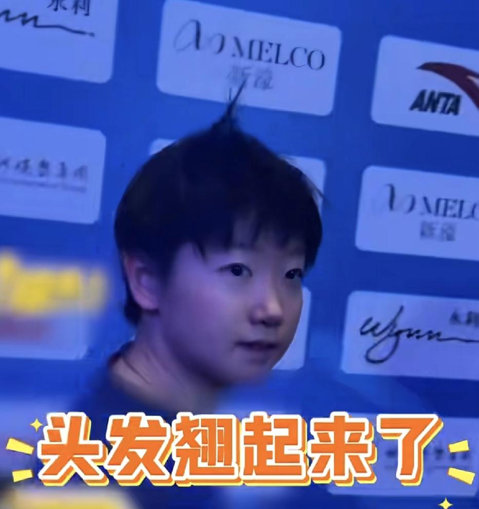 又是被莎莎可爱到的一天,昨天4:0赢了刘斐之后,习惯性抓头发,接受采访时,有几根头发就不听话的翘了起来,这些采访的记者光顾着问问题,也不知道提醒一下,迷糊莎什么也不知道,就这样可爱的接受完采访了。(图片来源于网络侵删)