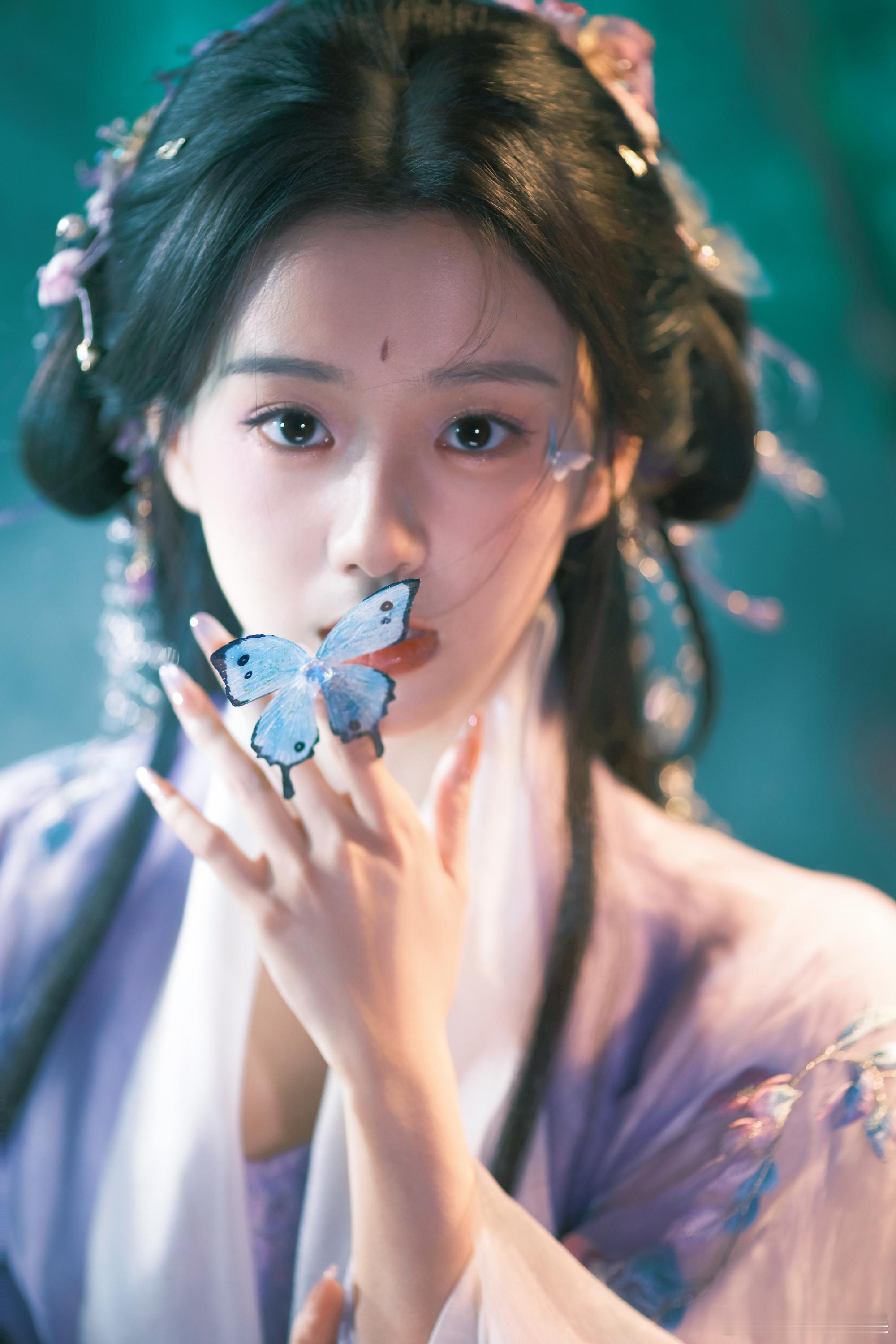 包上恩的古风造型越品越有味道!淡紫色汉服温柔氛围感拉满,小蝴蝶造型精致不突兀,再加上聊斋感十足的背景,气质与灵气兼具,好看得让人上头