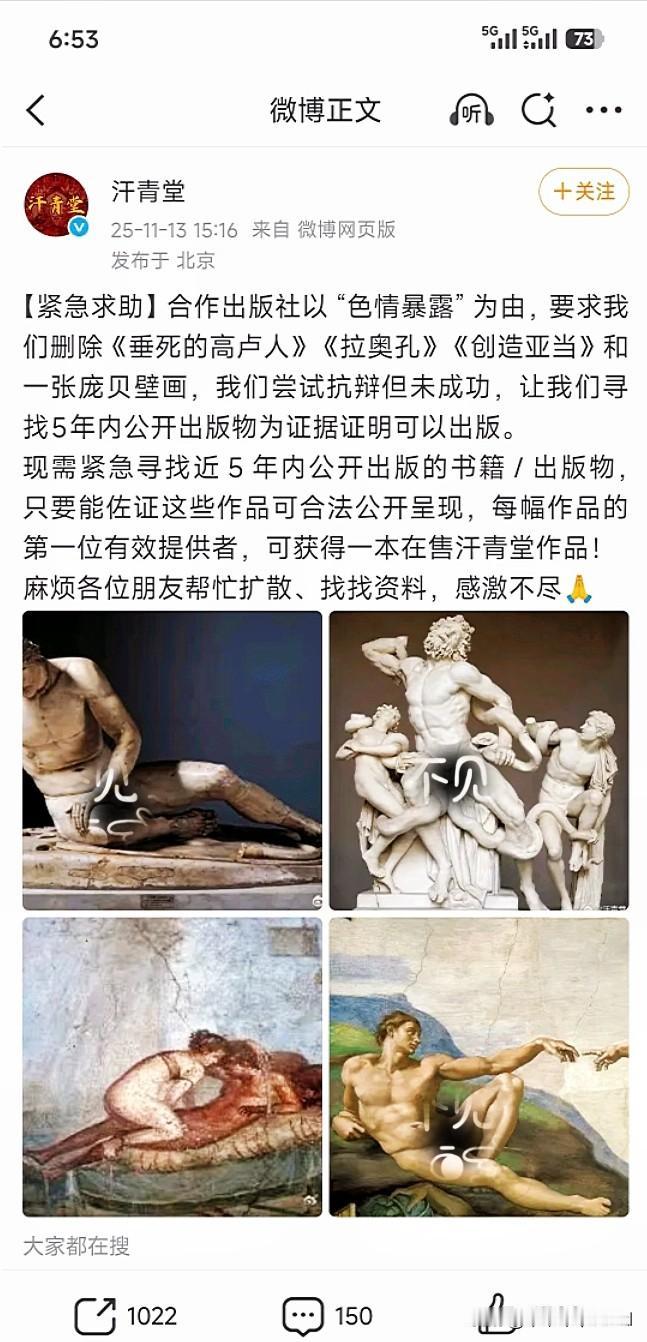 为国内美育悲哀,从网络平台夹到纸媒……冬日生活打卡季 衣服越穿越长,就差袍了…… 今天看见好几类奇葩评论,嗯,英语不要学语法,媒体不许对大企业出调查报告,哪怕那奶🥛,很多孩子喝…… 艺术嘛,更是色情,下一步该关闭所有美术课,尤其美术史;建议再严格审查医学类,尤其解剖学,让艺术在这块土地上彻底消失,各平台、媒体绝对可以名垂千古、为国内审美改道立下不世的汗马功劳! “今天中国的文盲不多了,但美盲很多。” ——吴冠中