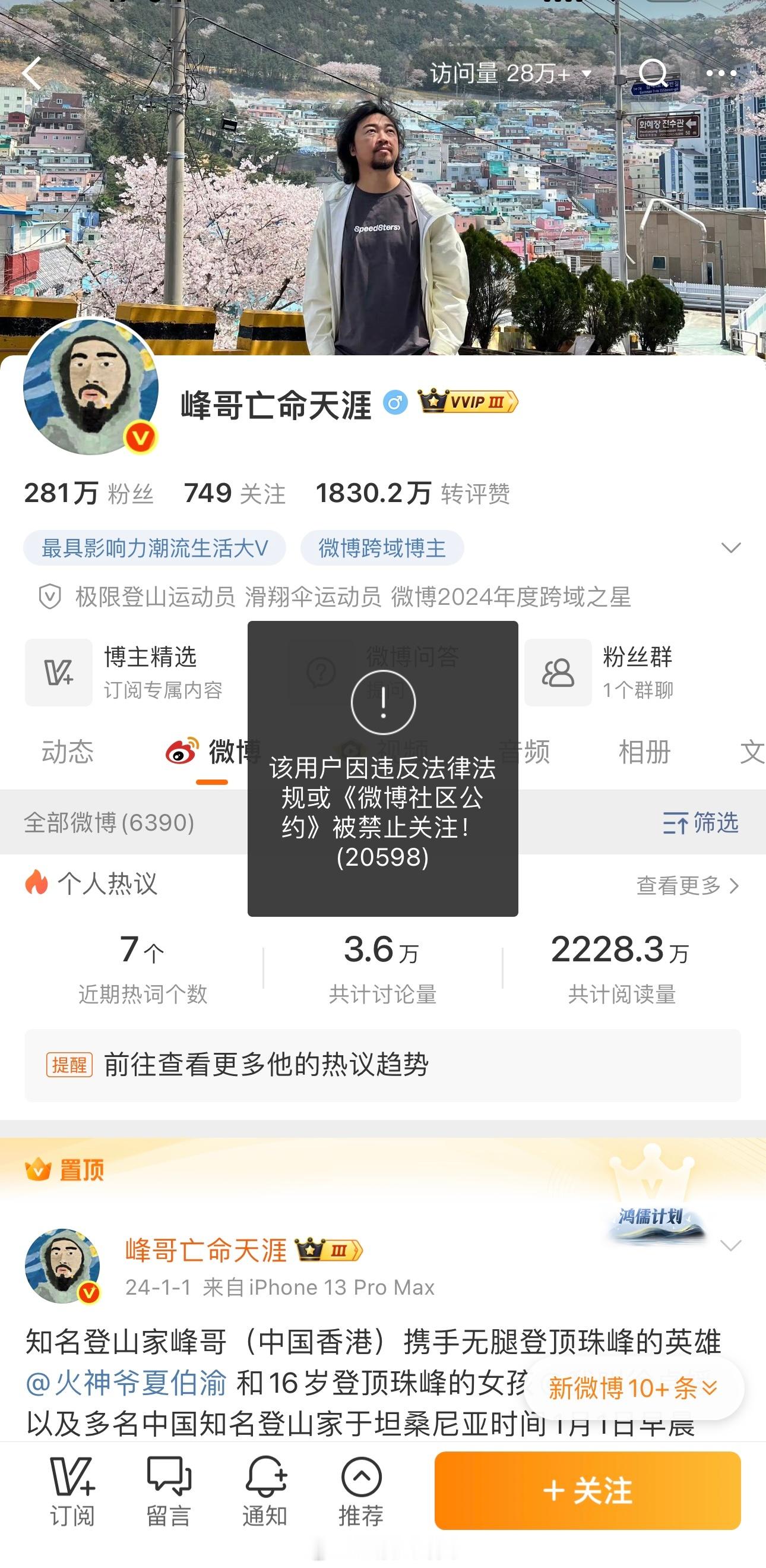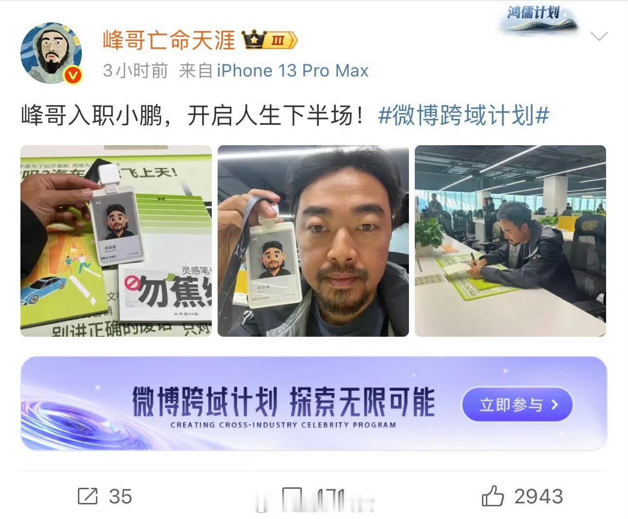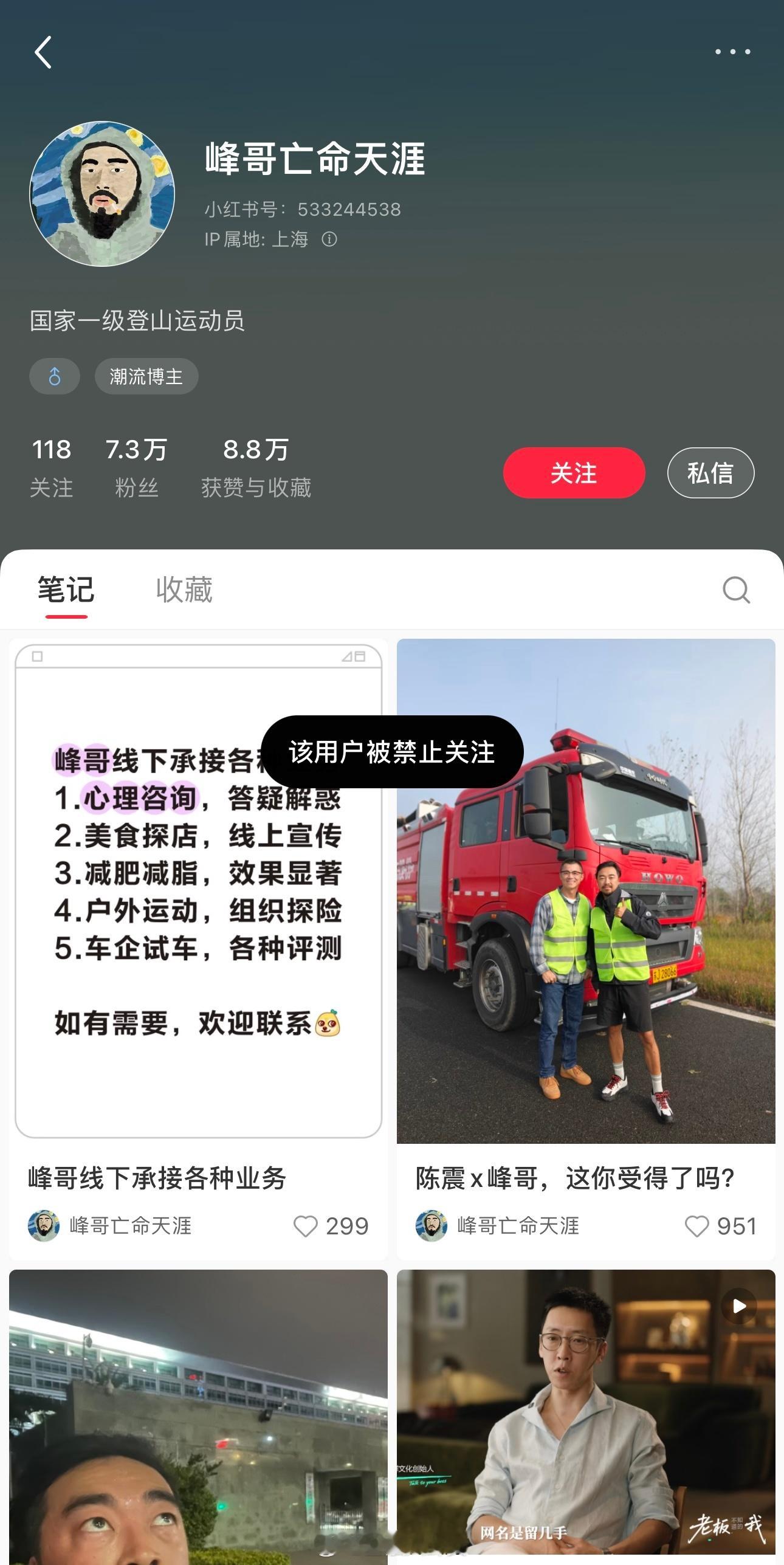峰哥亡命天涯多平台账号被禁止关注,此前刚入职小鹏汽车,年薪预计7位数