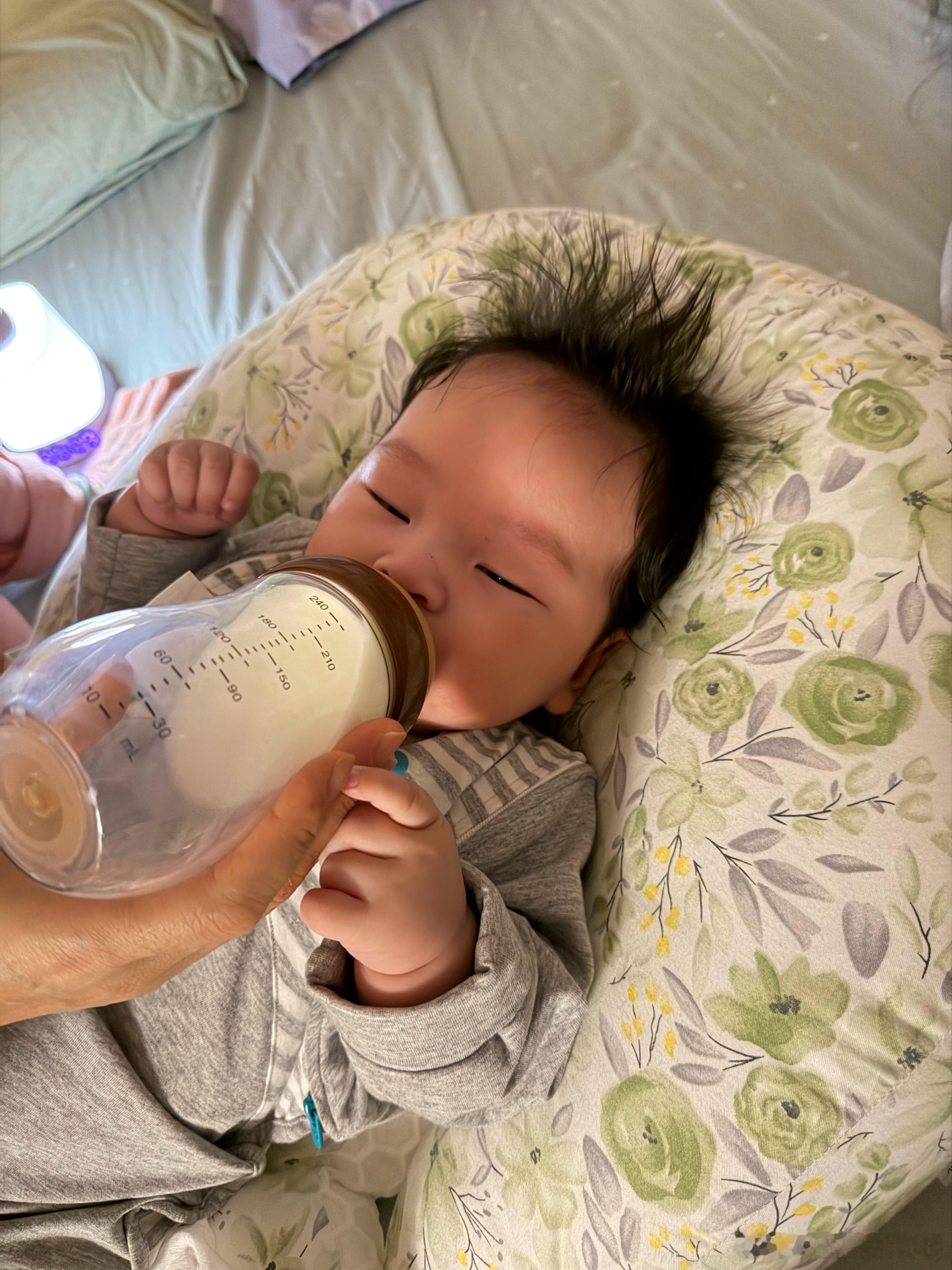 今儿是陪家人的一天 ,和金豆爷爷奶奶吃完晚饭给小金豆冲了奶粉 陪着他喝完后才发现 现在已经从40ml 喝到150ml了 明天我们就百天啦时间过的真快