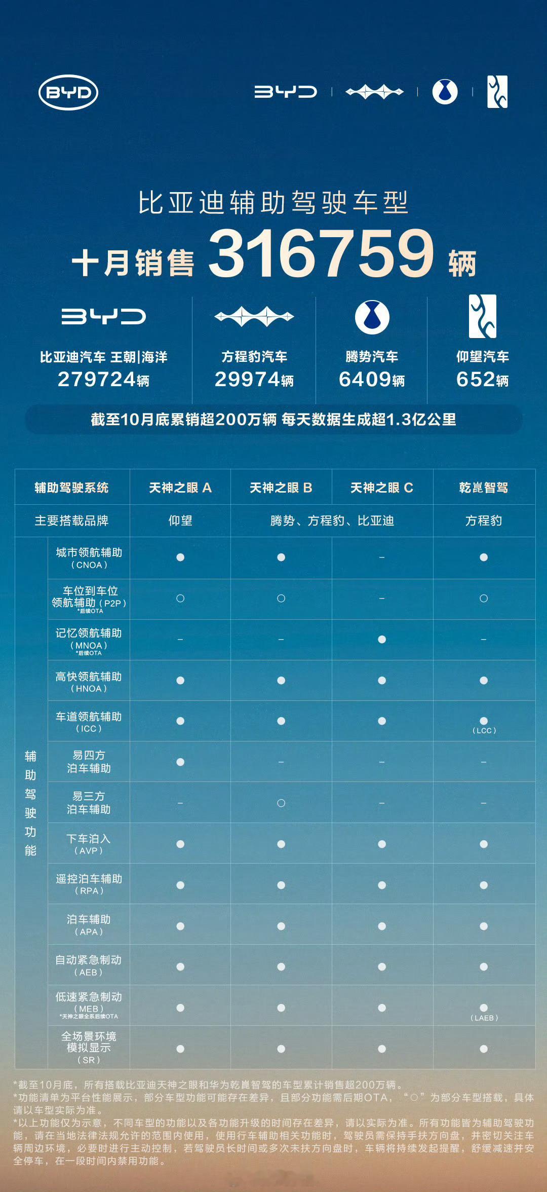 比亚迪天神之眼车型累销突破200万辆!每天生成辅助驾驶数据超1.3亿数据来自官方
