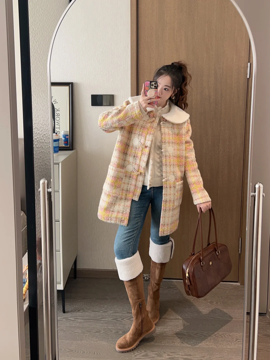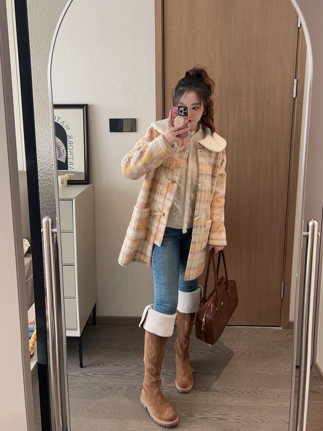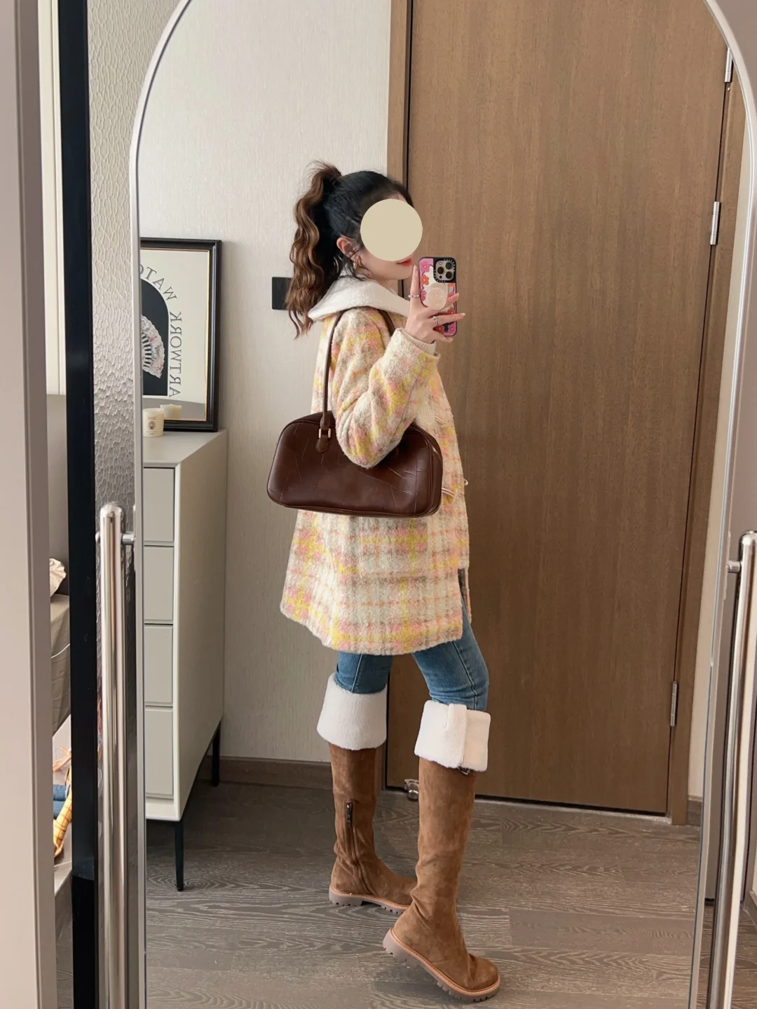 我的上班通勤穿搭 胶片日常 每日穿搭 涨粉涨赞用薯条 少女感穿搭 小个子穿搭 靴子 羊羔毛外套 不露腿穿搭 显瘦靴子