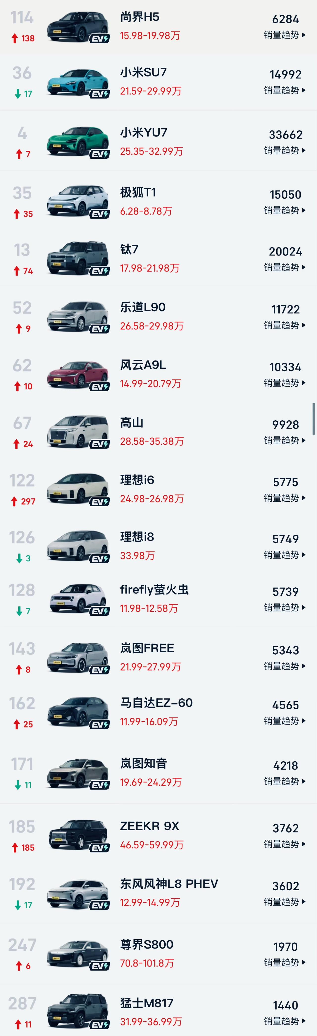 合资车企的纯电动车型确实挺便宜的,新发布的插混版日产N6才10.99万元,电池为