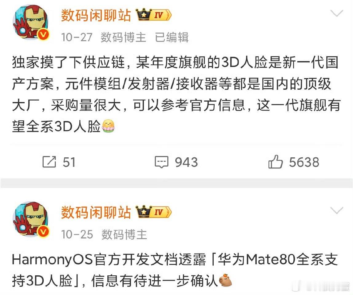 哦豁,华为Mate 80全系都上3D人脸+大直屏了。是看苹果17系列,在中国市场激活量超1000万台的数据销量刺激到,所以暂时放下高傲了吗(