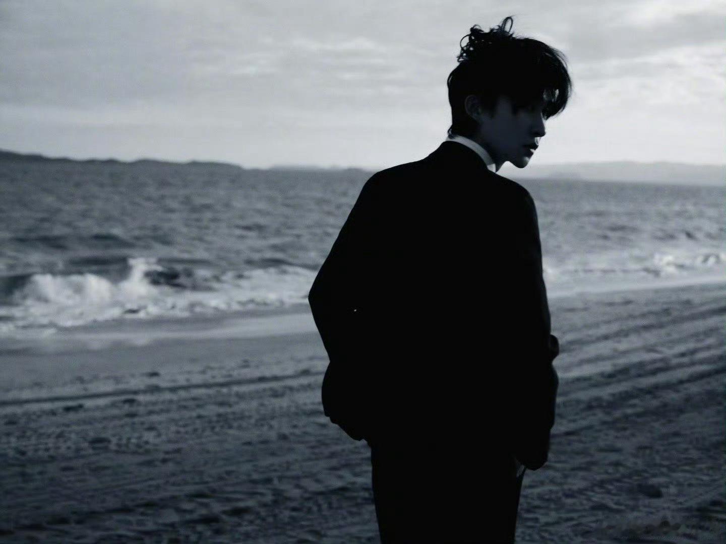 张集骏金鸡奖闭幕式出图,海边黑西装长卷发,帅是帅了,就是风大到差点吹成中分了是吧