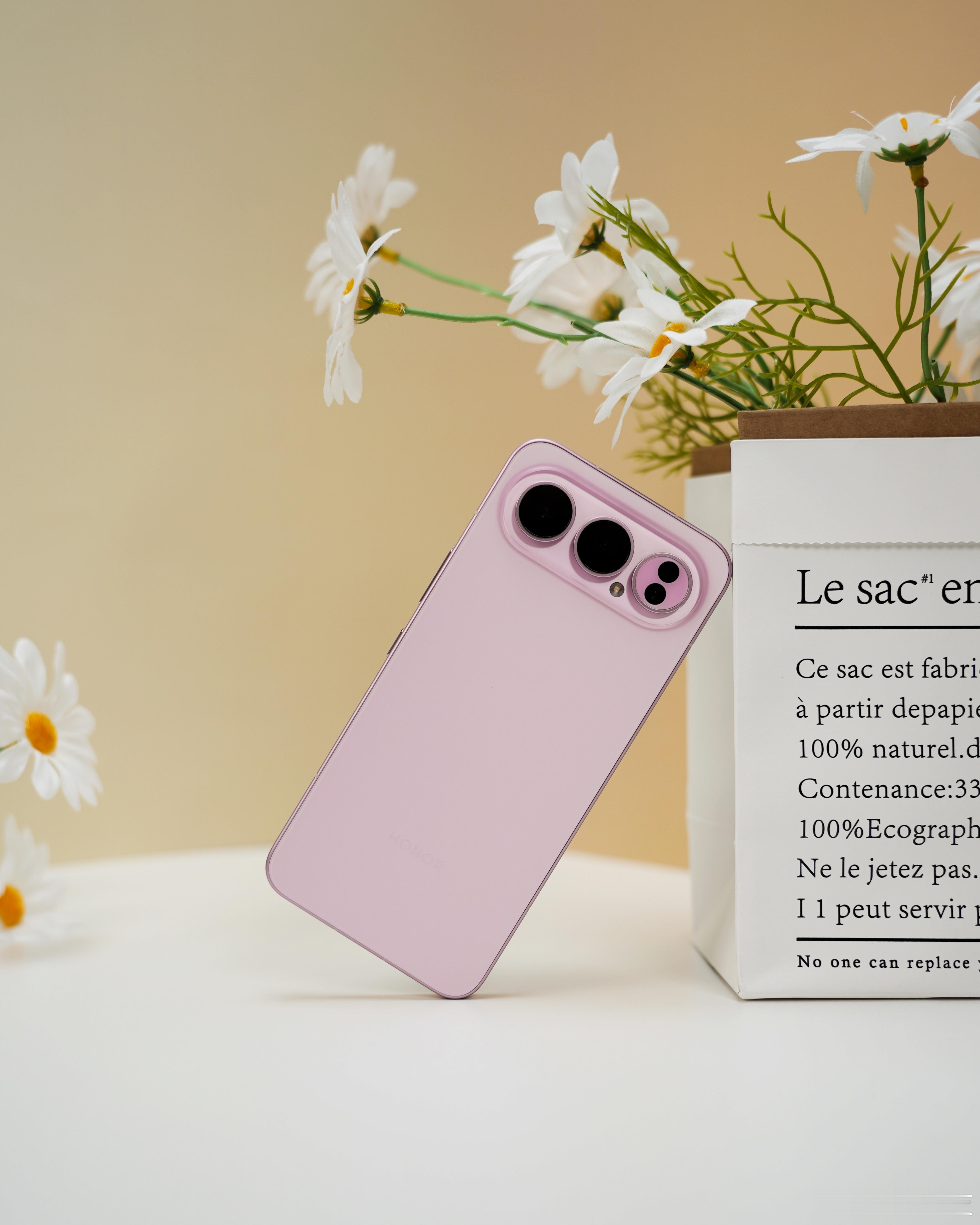 荣耀500 Pro已上手,这个星光粉配色好看吗?😍整机采用iPhone同款的一体冷雕工艺,Deco 与背板玻璃一体成型,在黄金握持尺寸下实现极致轻薄!这造型,是真的提前发布了iPhone Air 2!