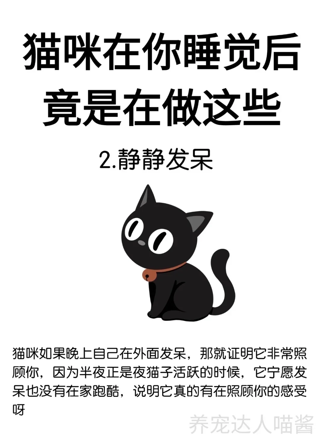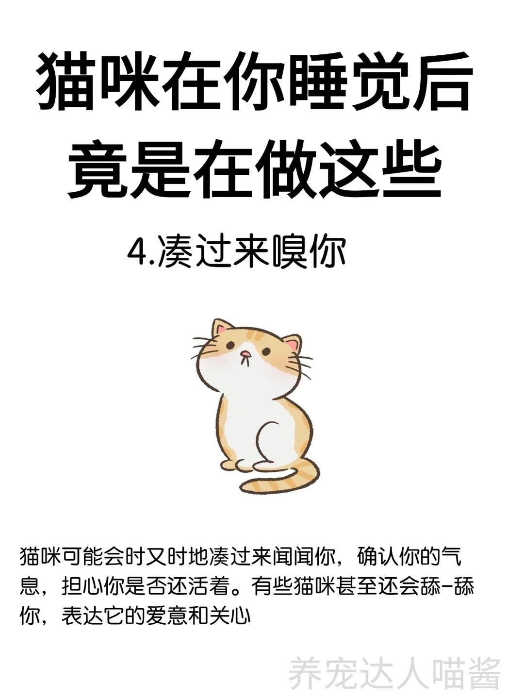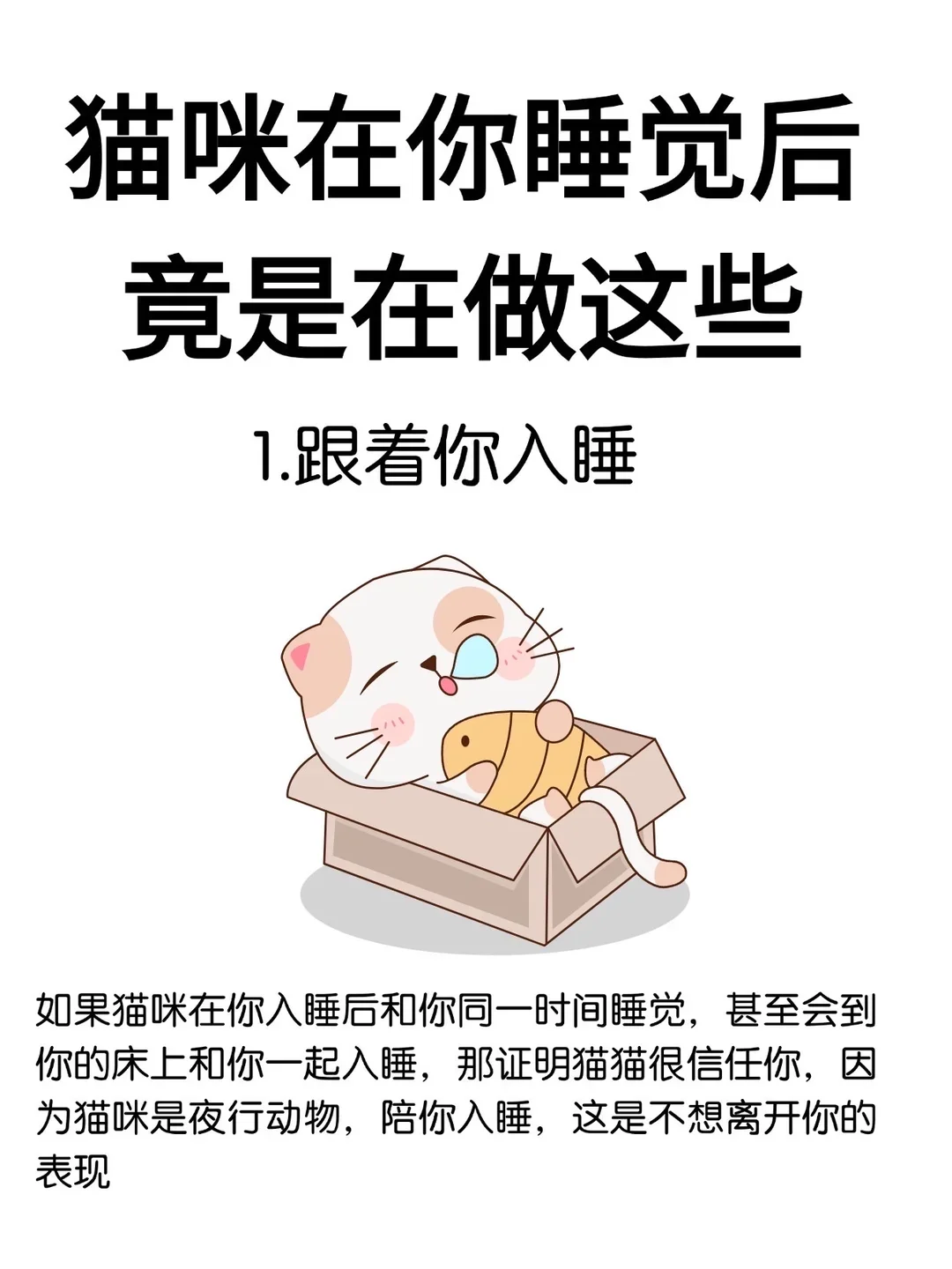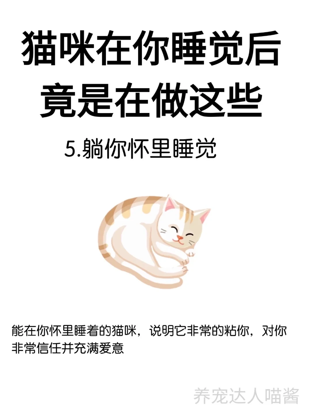 熬夜刷到这个,才知道我家猫在我睡后有多暖! 它会陪我一起睡(夜行动物为我改变作息)、自己发呆不跑酷(怕吵到我睡觉)、偷偷盯着我看(像在守护小宝贝)、凑过来闻我气息(确认我还活着)、赖在我怀里睡(把我当安全感来源)、在门口站岗(帮我防 “坏人”)。 养猫久了才明白,这些看似平常的举动,全是它爱我的证明啊!顺便补个养猫小知识:猫是肉食动物要护肠胃、别亲猫嘴(它会舔 PP)、蛋黄美毛别多吃、痛经可以喂鸡肝鸡蛋花生米、舒服了会咕噜、别强行带出门哦