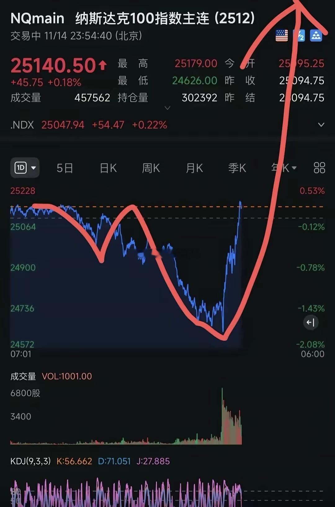 大反转,纳指强势反攻翻红,从跌1.8%到翻红拉回来了,修复能力还是很强的,技术面上这种是非常强的反弹,纳指暂时安全,意志不坚定很容易割肉离场。苹果、微软、特斯拉都慢慢翻回来,这种核心票的态度比指数更关键,说明市场紧张的情绪已经修复