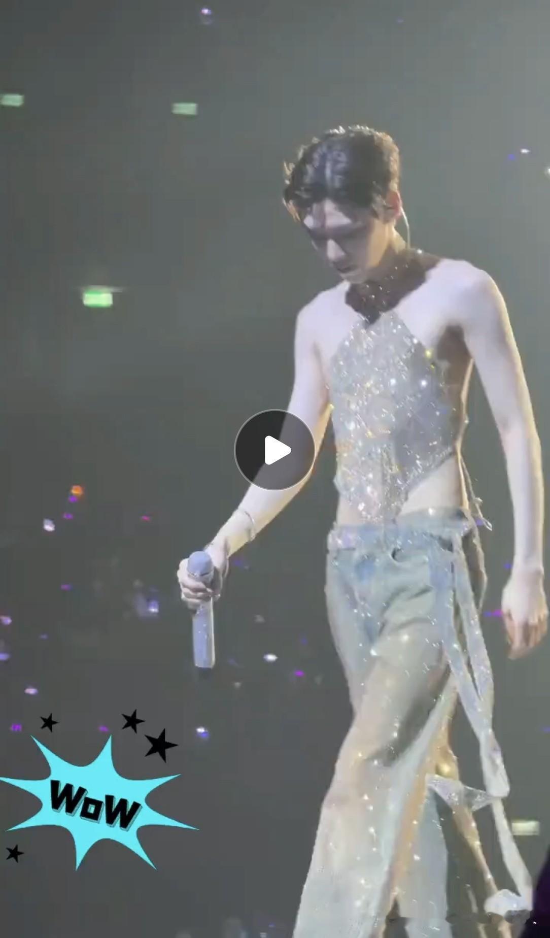 我的个天呐,这看得我浑身冷飕飕的。 这孩子家里该多穷啊,穿的衣服连肉都遮不完,还在台上费力巴气的唱哪门子的歌。 身材真好,感觉那小肚兜小了点,颜色也不对,这个好像应该是红色的,喜庆嘛。 看到后面我才发现,唱歌的这位居然是男的,看错了看错了。 这家伙没来中国唱吧,如果来了麻烦告诉一声,我奶奶亲自用手缝了一件红色的肚兜,可结实了。 到时候给他穿上保证喜庆又暖和,这孩子看着怪可怜的,家里衣服都穿不起,不能苦了孩子哟。