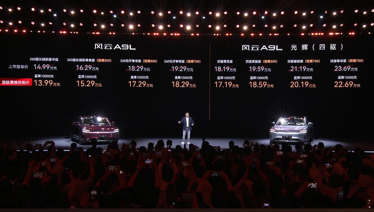 风云A9L猎鹰700版&四座版上市杨紫也来了!真好看哈!价格也来了,风云A9L超级置换抢购价,13.99万元起;风云A9L光辉(四驱),超级置换抢购价17.19万元起!太香了!
