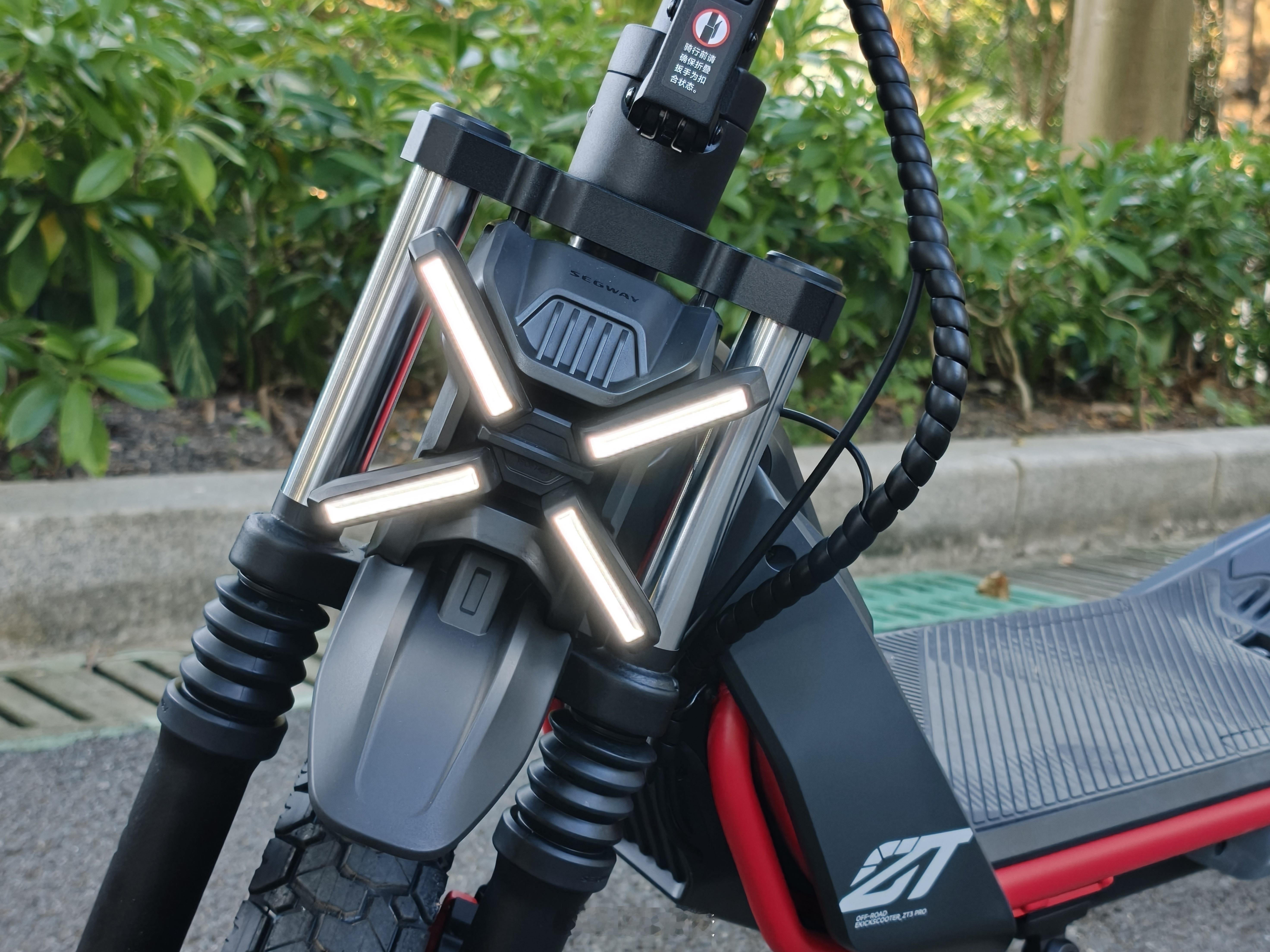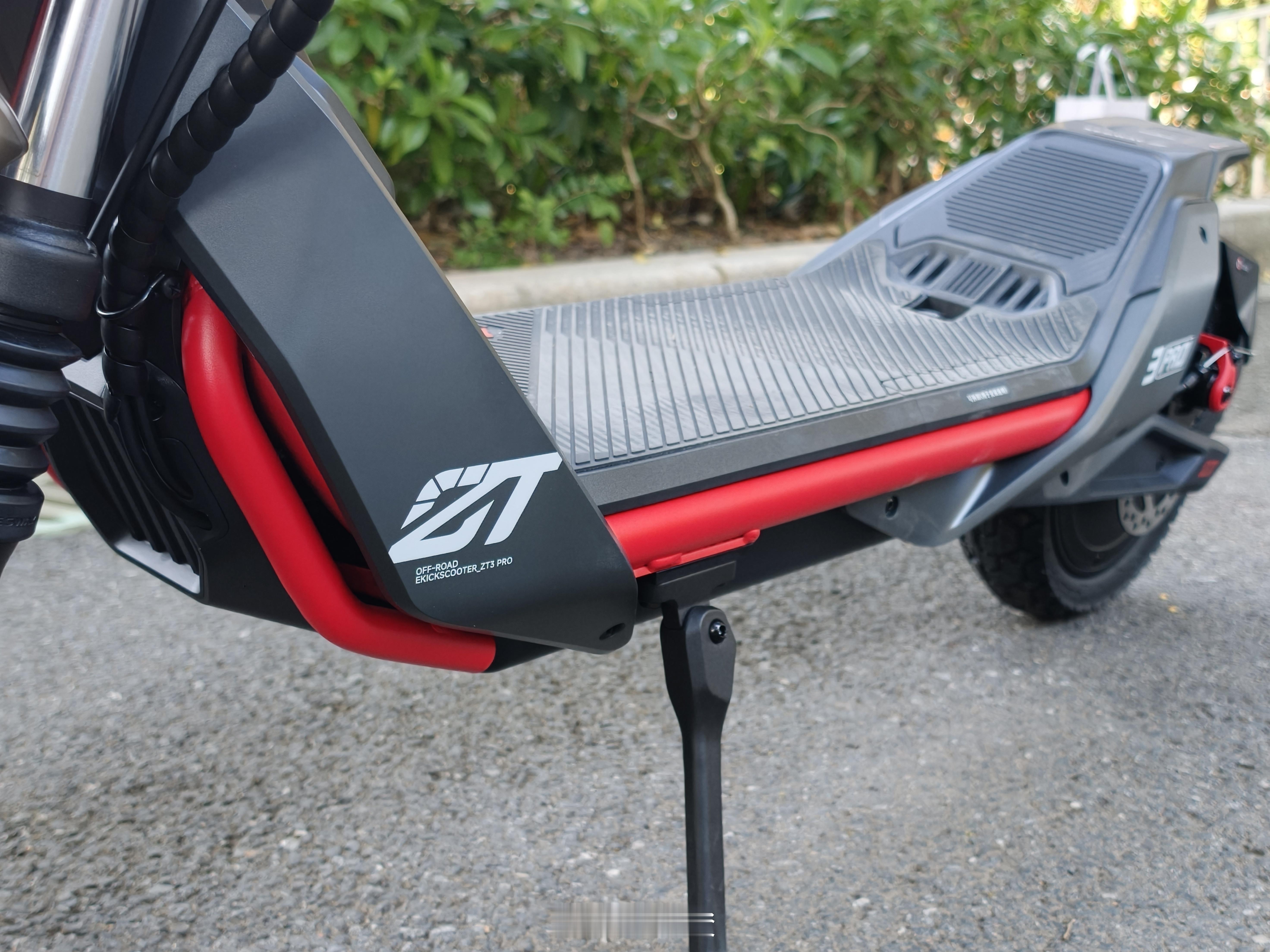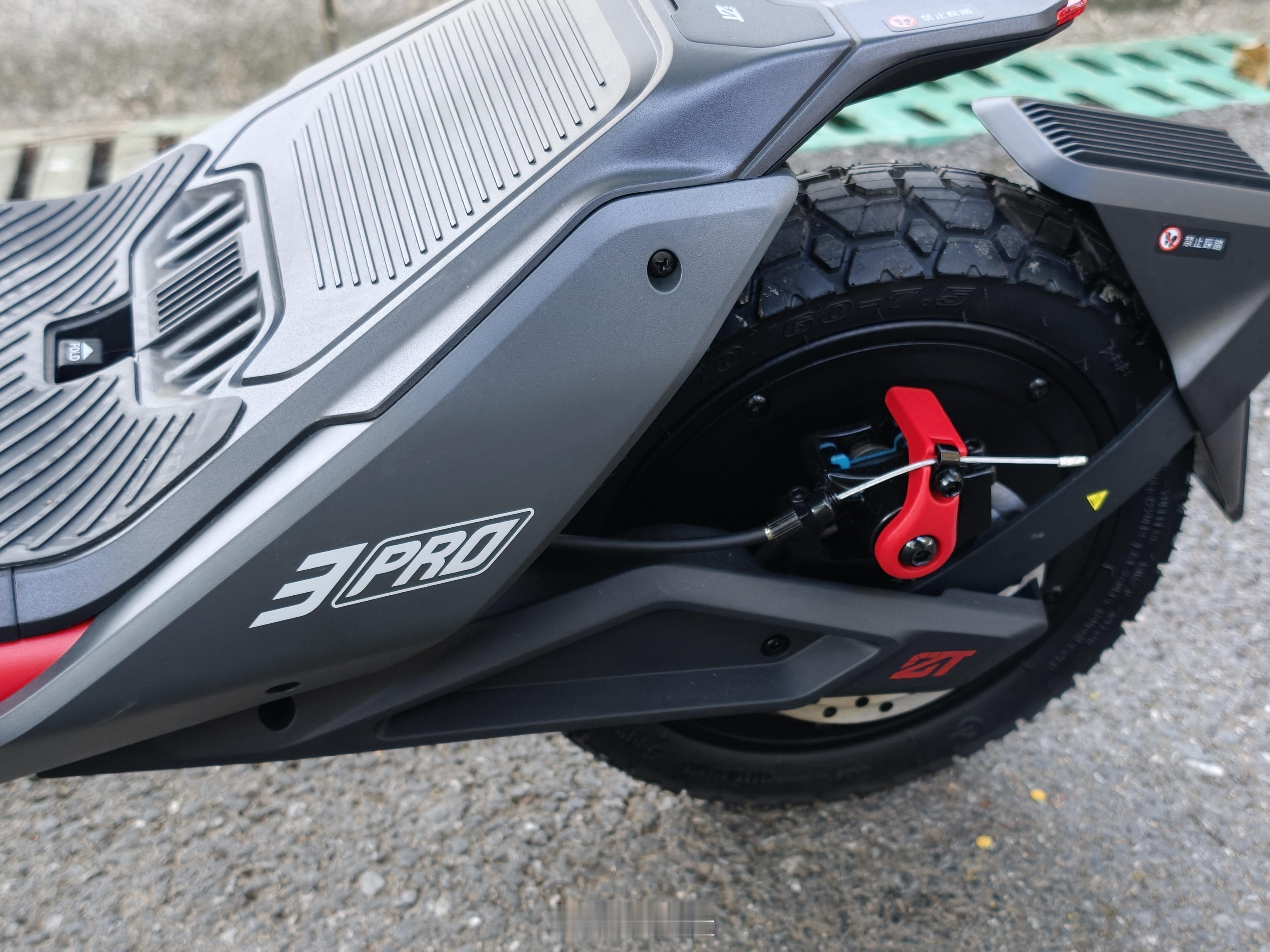 「试驾」一下新买的赛格威ZT3 Pro,这应该是目前配置最强的滑板车之一。这车定位是「越野滑板车」,「越野」意味着这车拥有更大的马力、扭矩、高度、尺寸、轮胎、重量,也意味着它很多方面都是掌握平衡的老手很爽,不适合新手练手的车。这车尺寸足有11寸,对比其他滑板车的8寸、10寸规格,在滑板车里是个巨无霸,这车在展开状态下有1.6米高,折叠状态下,也因为很长,对轿车车厢不太友好。事实上即使是我用L9放车,我也要放倒第三排才能勉强放进去,可想而知它有多长。不过,高底盘的增益也是明显的,比如更高的视野,又比如可以无视沙地、石子,这是普通电动滑板做不到的,很有「驾驶乐趣」,很爽!我比较喜欢的是它前后双避震的配置,前叉一套,后轮一套弹簧,这能让车子在压路牙的时候减少颠簸,尤其对于这种小轮子车,如果没有避震结构,压路勘一是容易失控,二是颠簸会传到手柄,非常不舒服。原厂这套避震是调教得比较软的状态,过凹凸不平的路滤震还不错。这套避震还有可以DIY的「空气悬挂」版本,之后我会研究一下。当然,你也可以0成本增加滑板的减震,比如穿一双厚底一点的鞋。动力的话,这车是后驱结构,国内版极速35,为什么要强调国内版,是因为这车德国版能到45,很猛,试过「推背感」极强,车把手带着你往前的感觉,挺过瘾。扭力带着我爬坡还可以,只要不是很陡的坡它都能上去,但人行道那种斜坡就别想了,老老实实下车推。智能化这部分就一般般了,因为滑板本来就是小品类(相较于电单车、平衡车),而且能够容纳通讯盒子的空间有限,所以这车只提供了九号APP基础的远程开关车、定时充电这些很基础的选项,剩余电量也只能通过蓝牙连接状态下和车辆本地才能看到,定位就更别想了,不过车辆基于蓝牙通讯支持Find My(根据最近一次连接位置定位),所以也姑且算是有定位功能吧。今天就简单更这么多,在餐厅用手机码字实在没有电脑敲键盘畅快,先吃饭。PS.推荐戴护具,我这是因为头盔忘带了,不要学噢
