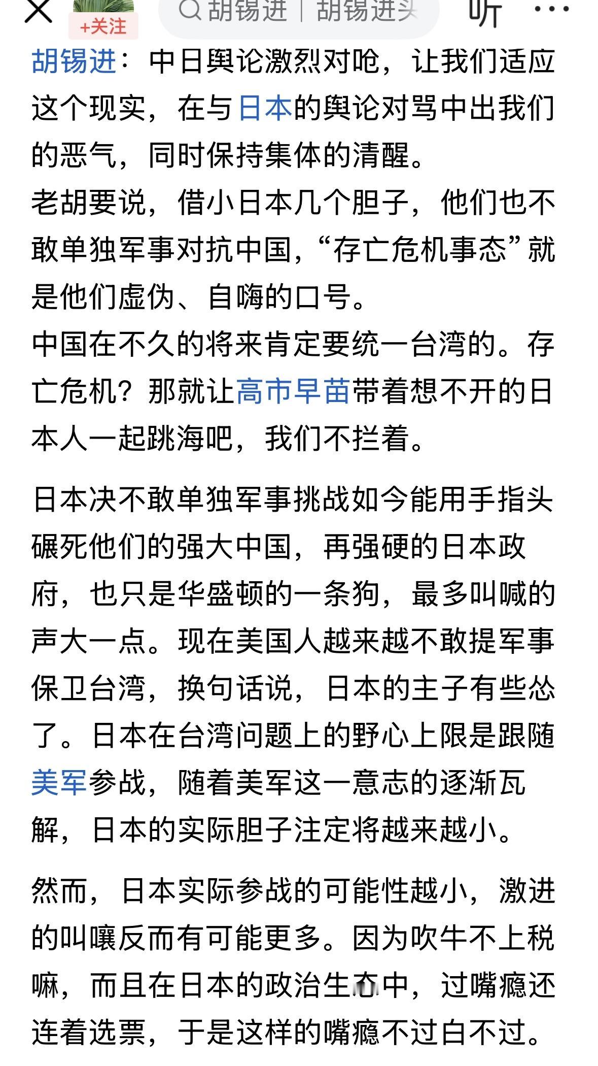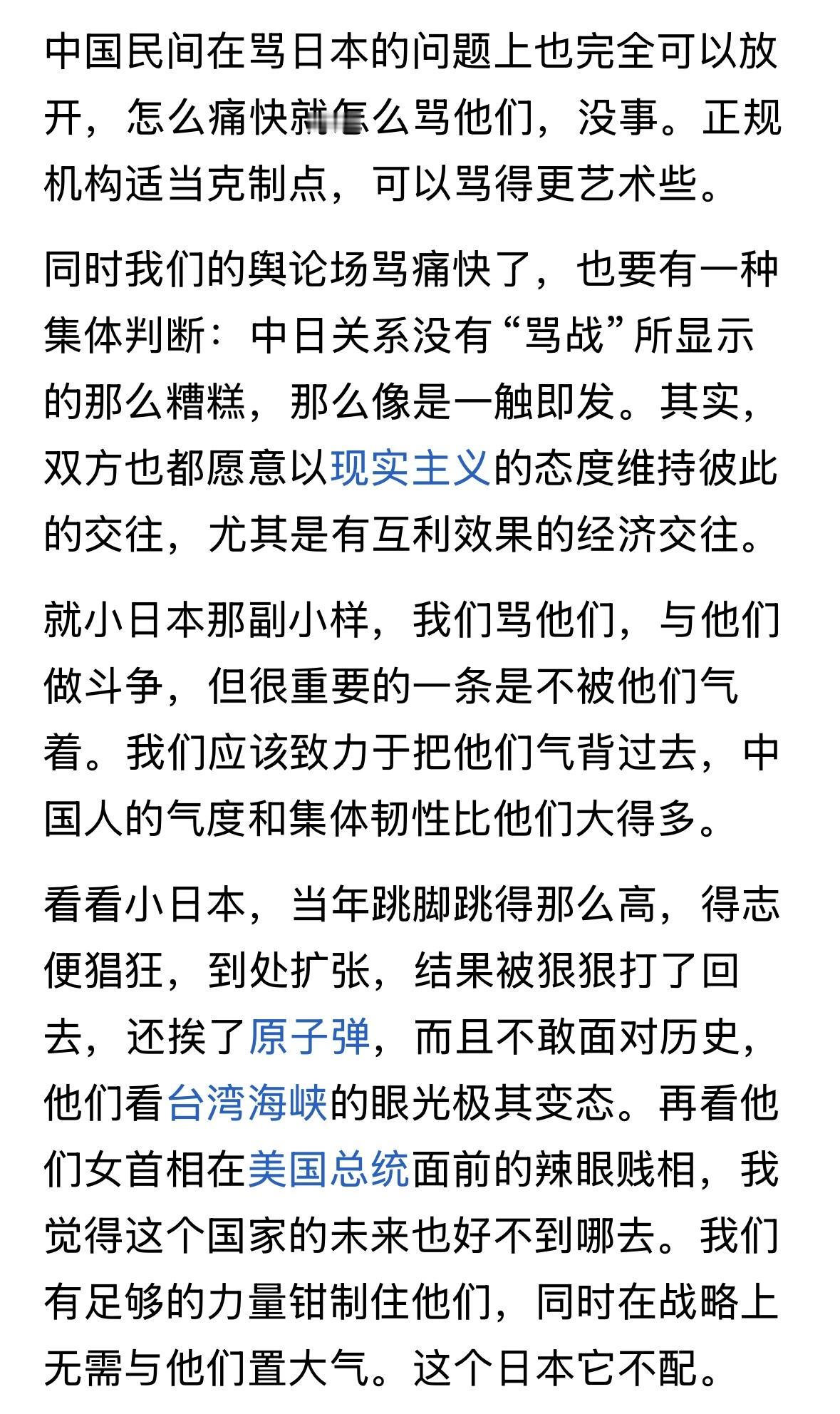 老胡眼里的中日冲突,就是一场骂架,怎么难听怎么骂?一直骂到天亮,我们就赢了,老胡这招厉害!