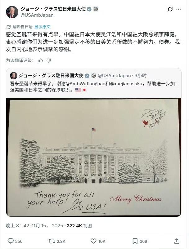 美国驻日大使好像觉得自己很幽默,发文阴阳中国驻日大使和驻大阪总领事,称谢谢他们进一步加强了美日之间的深厚联系。 对美国人最有信心的是日本人,对日本人最有信心的是中国的某一个群体,正所谓认知对得起遭遇。