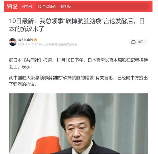 最新,中国驻大阪总领事薛剑在X平台上发文称:你永远不能相信这个战争制造者的话,他所说的前线是一片“火海”。台湾问题,是中国的内政,是中国人民自己解决的问题。他与包括美国在内的任何其它国家没有关系,绝对没有任何干预或干涉的余地。在台湾问题上的任何准备都是徒劳的,任何伸出来的手都会被砍掉。 最近中国驻大阪总领事薛剑在X平台上的一段话,直接在国内外舆论场上掀起了轩然大波,不少人看完都直呼“够刚”,但也有不少人看完陷入了沉思。 这话不是凭空说的,明眼人一看就知道是冲着日本刚上任不久的首相高市早苗去的,薛剑总领事直接点出“你永远不能相信这个战争制造者的话,他所说的前线是一片‘火海’”,紧接着就把话头落到了最核心的台湾问题上,字字铿锵:“台湾问题,是中国的内政,是中国人民自己解决的问题。 他与包括美国在内的任何其它国家没有关系,绝对没有任何干预或干涉的余地。在台湾问题上的任何准备都是徒劳的,任何伸出来的手都会被砍掉。” 其实在这之前,薛剑总领事就有过更尖锐的表态,那句“擅自伸过来的肮脏脑袋,只能毫不犹豫地砍掉,你做好觉悟了吗!”已经在日本政坛搅起过一阵风浪,当时自民党的一些政客就跳出来喊着要驱逐薛剑总领事,日本官房长官木原稔还专门开记者会向中方提了所谓的“强烈抗议”。 按说有了之前“砍脑袋”的强硬铺垫,再看到“砍手”的表态应该早有心理准备,可真看到这段话的时候,我还是稍稍愣了一下。 这倒不是因为这话不够有冲击力,毕竟涉及到国家核心利益,态度硬气是应该的,真正让我意外的是,这事儿发酵的时候,除了日本那边的激烈反应,咱们国内也有不少人觉得薛剑总领事的话是不是说得有点过了。 要弄明白这事儿的来龙去脉,得先说说高市早苗是个什么样的人物。这位日本历史上首位女首相,在日本政坛向来以“极右翼”标签著称,早在担任经济安全保障担当大臣的时候,就处处透着强硬的保守色彩。 她不光主张修改日本宪法第九条,要把自卫队改成“国防军”,还在2021年8月15日跟安倍晋三一起去参拜靖国神社,要知道那可是供奉着二战甲级战犯的地方,这种行为本身就是对历史正义的漠视。 今年10月上任之后,她在施政方针演讲里更是把这种强硬发挥到了极致,还张罗着要设立“国家情报局”,说是为了应对“外国威胁”,明眼人都能看出这背后的针对性。 而在台湾问题上,高市早苗虽然没直接说要干涉,但她一贯的亲美立场和对“台独”势力的暧昧态度,再加上之前放出的“前线火海”之类的言论,显然是在给地区局势添乱,这也难怪薛剑总领事会直接称她为“战争制造者”。 日本自民党的反应倒是在意料之中,毕竟高市早苗是他们推上台的首相,被我方总领事直接点名批评,面子上肯定挂不住。那些喊着要驱逐的声音,更多是政治作秀,真要这么做就等于彻底撕破脸,对两国关系的损害不是他们能承受的,所以也就是喊喊口号罢了。 真正值得琢磨的是国内的不同声音,有不少人觉得,外交场合讲究的是有理有节,就算要表达强硬立场,也应该用更委婉、更具策略性的语言,这么直白尖锐的表述,会不会激化矛盾,反而让局势更难把控? 还有人担心,这种表态会不会给外界留下“中国外交强硬激进”的印象,影响咱们的国际形象,甚至让一些中立国家产生误解。 这些担心不能说没有道理,外交确实是门艺术,说话做事都得考虑长远影响,讲究刚柔并济。但反过来想,薛剑总领事之所以这么说,也不是一时冲动。 台湾问题是咱们国家的核心利益,是底线中的底线,这些年美国拉着日本等盟友,在台湾问题上不断试探,又是卖武器又是搞“政治互动”,明里暗里支持“台独”势力,这种情况下再一味地委婉,反而会让对方觉得咱们好欺负,得寸进尺。 高市早苗作为日本首相,她的言论和立场直接关系到地区稳定,面对这种带有“战争煽动”意味的表态,咱们必须亮出明确的态度,让对方清楚知道干涉台湾问题的后果,这种强硬其实是对底线的守护,是对“台独”势力和外部干涉者的警示。 而且咱们得搞清楚,这种强硬不是没有分寸的蛮干,而是有事实依据的表态。 薛剑总领事的话里,先点出“不能相信战争制造者的话”,针对性很明确,就是回应高市早苗之前的不当言论,然后清晰阐明台湾问题是内政的核心立场,逻辑链条很完整,既表达了愤怒,又亮明了原则,并不是无的放矢。 再说了,外交场合从来不是只有一种声音,有时候温和的表态能促进沟通,有时候强硬的发声才能震慑对手,不同的场合用不同的方式,这本身就是外交策略的一部分。 其实国内有不同的声音,恰恰说明大家都在关心国家的外交和利益,这种讨论本身不是坏事。 薛剑总领事的表态,虽然听起来尖锐,但传递的信号是清晰且一致的:台湾问题不容干涉,任何敢伸手的势力都不会有好下场。