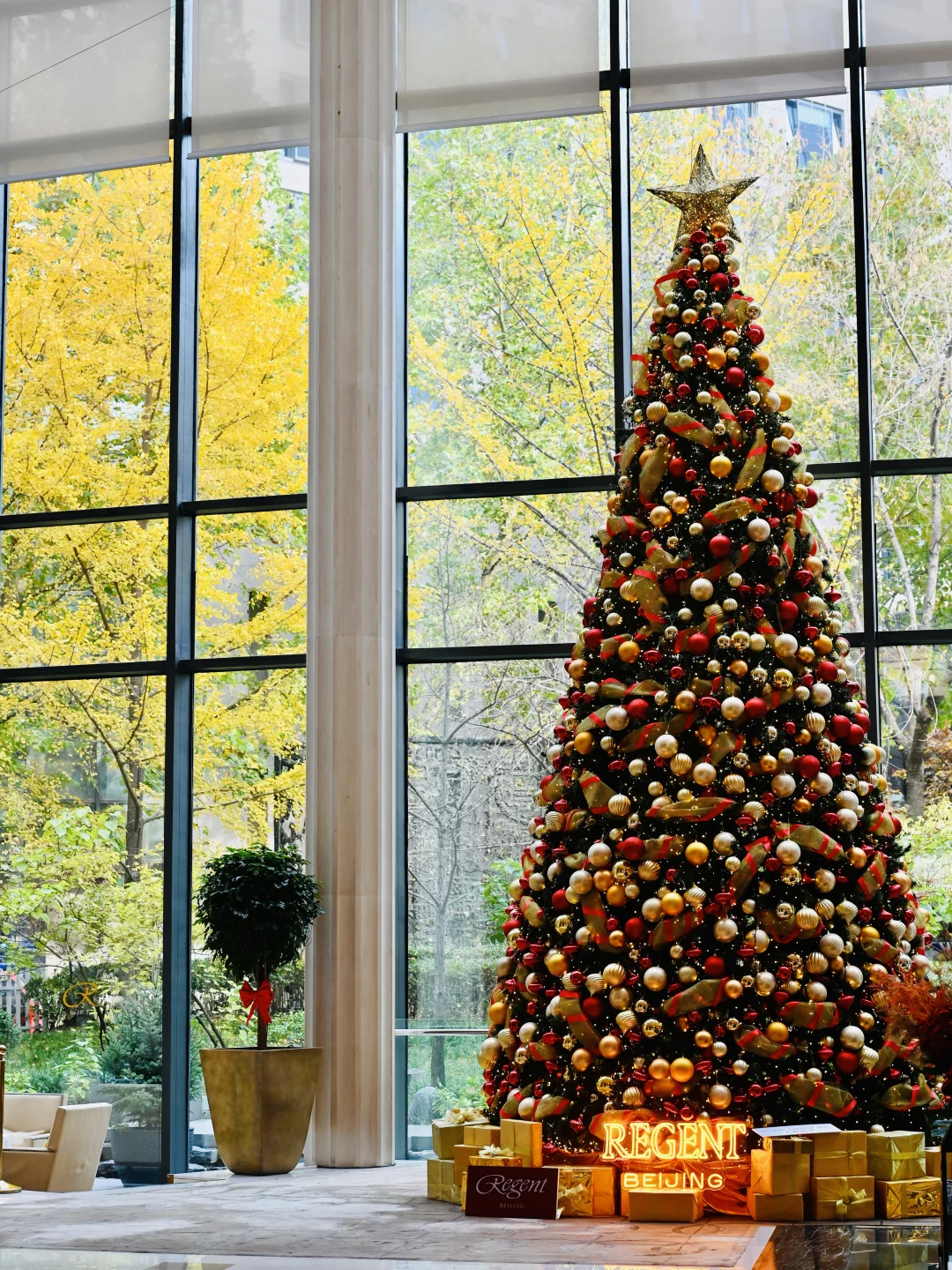 圣诞树已经亮灯,更惊喜的是窗外还有银杏