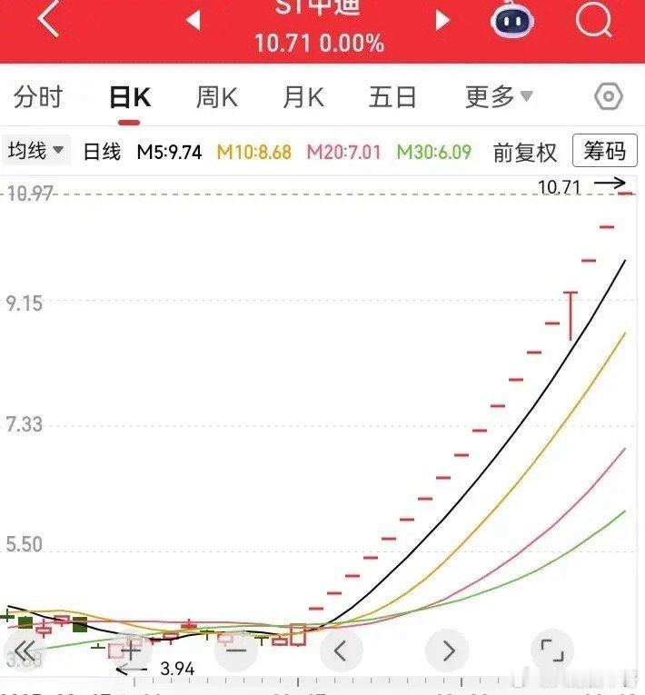 连续20个一字板涨停的走势!这也太妖了吧,一个戴帽子的st票,能走出这样神话的走势。一个月前还是4块多,一个月后就站上10块位置。