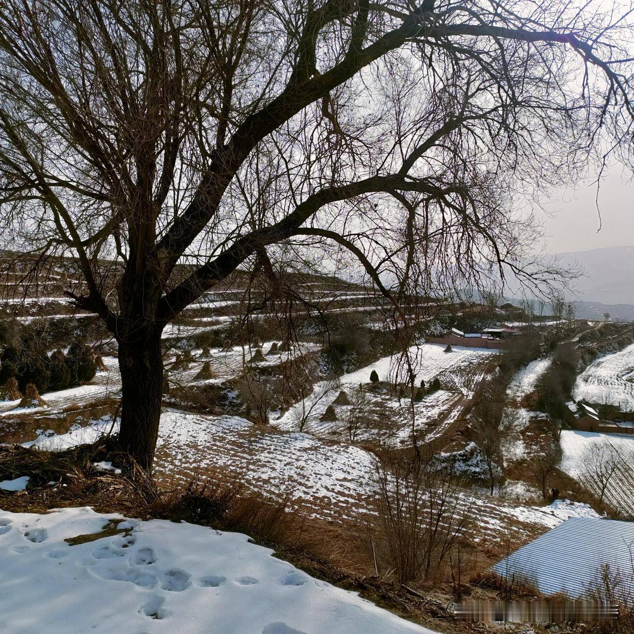 光秃秃的老树支棱着枝桠,把天空切成细碎的网,雪像揉碎的糖霜,懒懒散散裹在田埂和草垛上,连脚印都沾着清冽的冷意。远处矮房冒不出烟,只有土坡和残雪在风里安安静静——这是北方冬天独有的“慢”,冷得干净,也静得踏实。