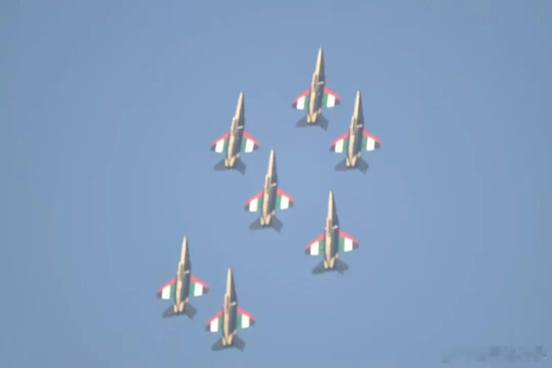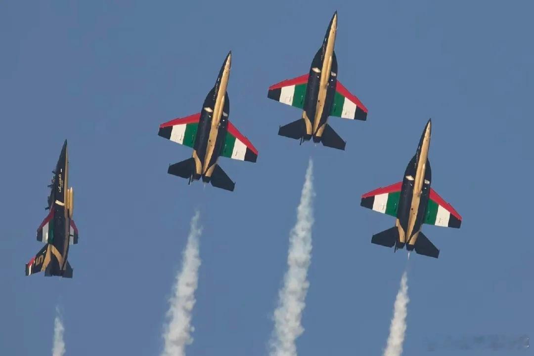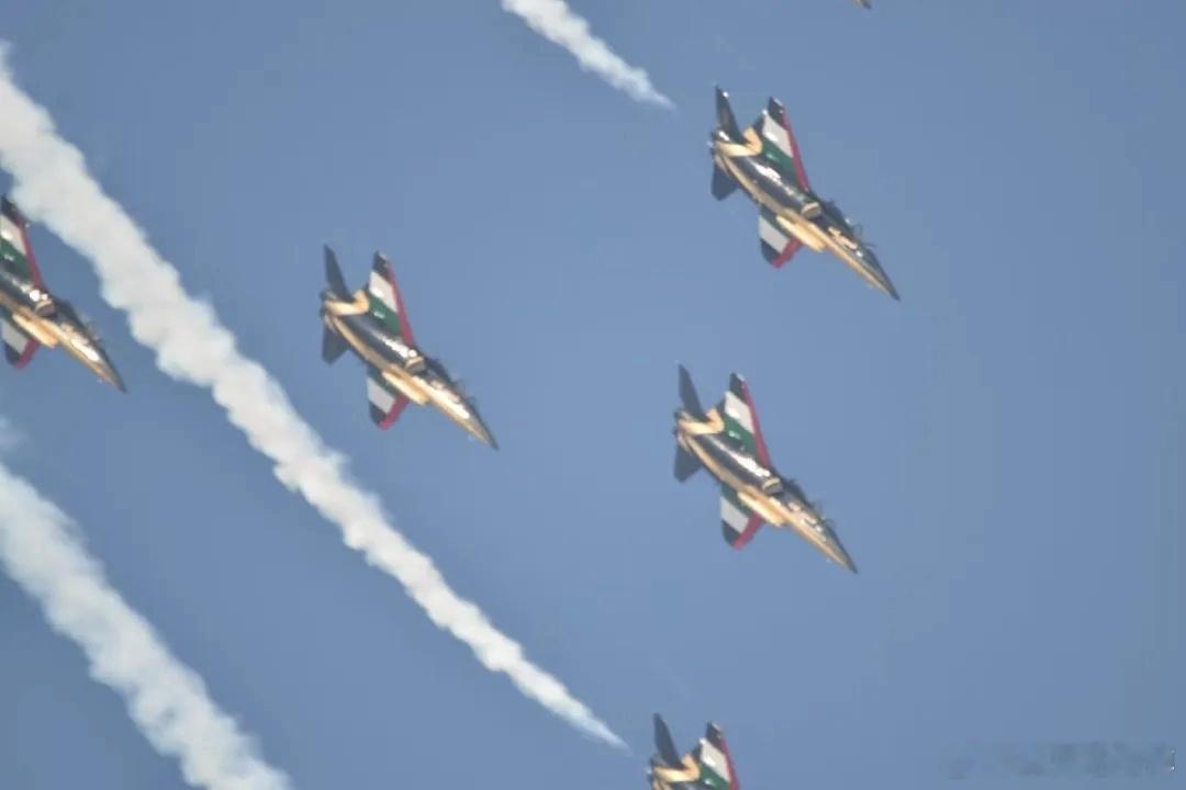 11月16日,阿联酋骑士飞行表演队在迪拜航展彩排上使用新换装的 L-15 高教机进行编队飞行演练