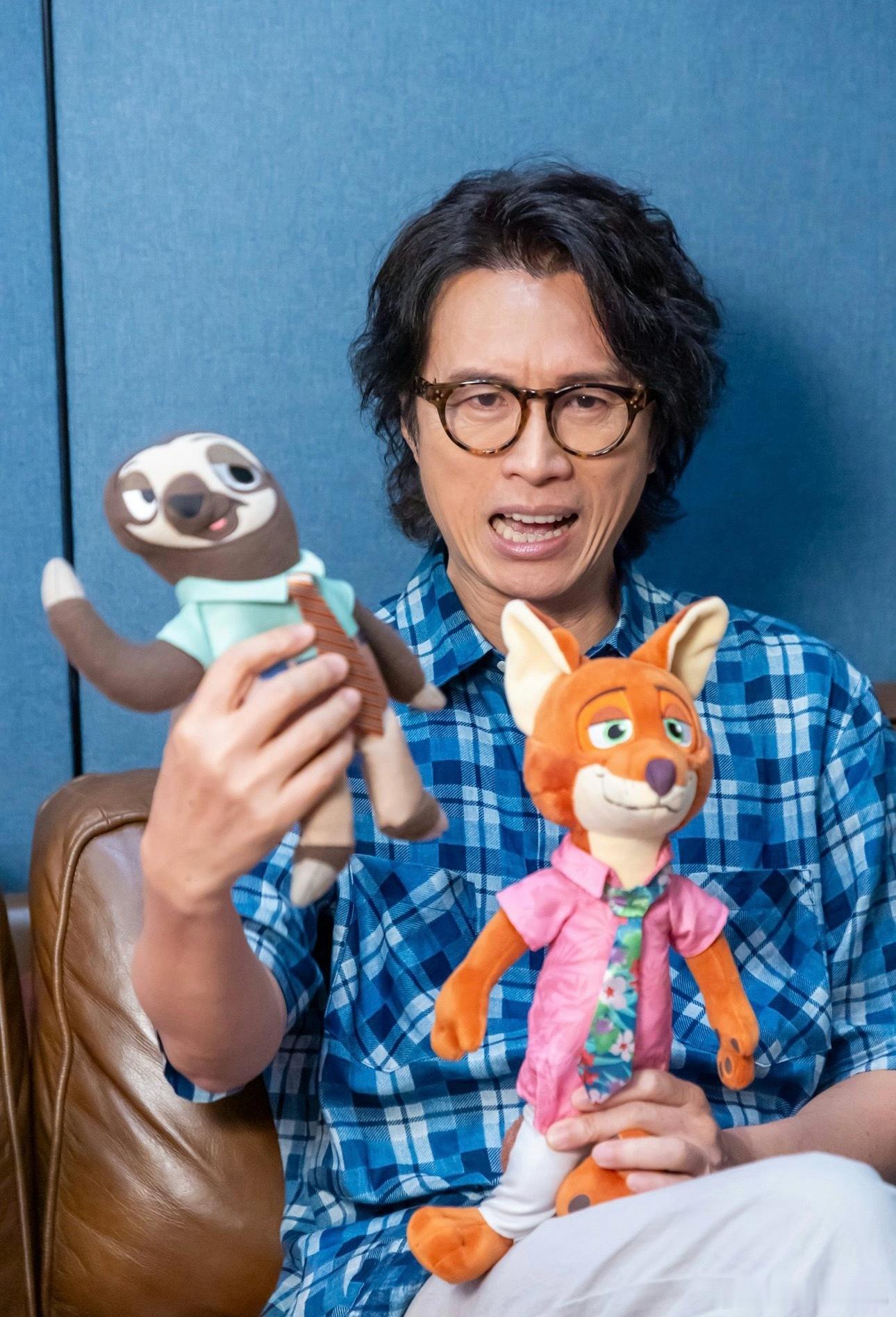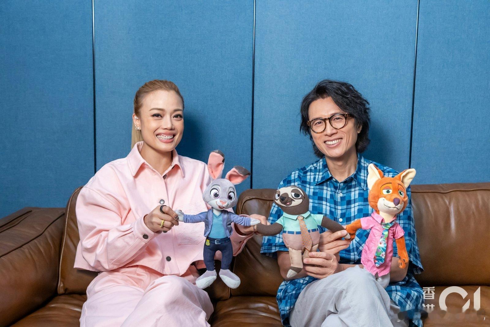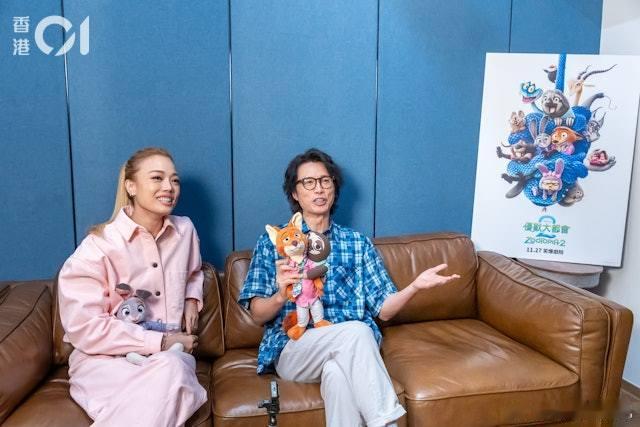 为《疯狂动物城2》做宣传的黄子华和容祖儿。