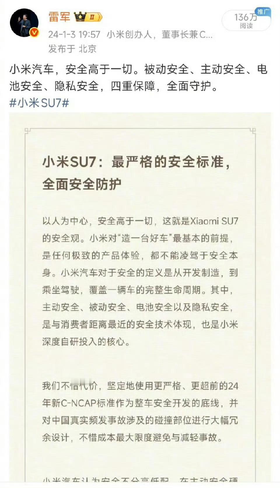 雷总 辟谣 小米汽车几次大事故,都有伤亡,不提安全不行了,生命至上呀!