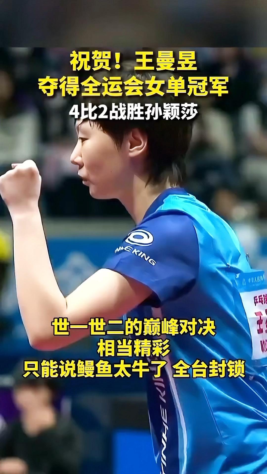 王曼昱战胜孙颖莎,夺得全运会乒乓球女单冠军 在乒乓球的世界里,天才与努力总在不断交锋,谁能笑到最后,似乎总带着一份令人屏息的悬念。这一次,全运会的赛场上,王曼昱用一场精彩绝伦的表现,战胜了昔日的搭档孙颖莎,夺得了女子单打冠军。这不仅仅是一场比赛的胜负,更是一场关于坚持、突破与人性光辉的深刻展现。 赛场上的王曼昱,像一股澎湃的青春之风,她的每一个挥拍都带着坚定与自信。面对孙颖莎这个曾经的“天花板”,她没有畏惧,没有退缩。相反,她用行动告诉所有人:只要心中有梦,再高的山也能被翻越,再深的谷也能走出一条光明大道。这不仅仅是技术的比拼,更是意志的较量。王曼昱的每一次得分,都像是在向世界宣告:只要敢于拼搏,没有什么是不可能的。 而孙颖莎,作为年轻一代的领军人物,她的表现同样令人敬佩。她用坚韧不拔的精神,展现了顶尖运动员的风采。虽然这次未能如愿夺冠,但她的拼搏让人看到了未来的无限可能。她的笑容中,没有失落,只有对下一次的期待。这种从失败中汲取力量的态度,正是我们每个人都应该学习的。 这场比赛的背后,折射出的是一代年轻人的拼搏精神和不断突破自我的勇气。它让我们看到,成功从来都不是偶然,而是无数个日夜的汗水与坚持。或许我们每个人都在自己的生活中扮演着“王曼昱”或“孙颖莎”的角色——面对挑战,选择坚持还是放弃,决定了我们最终的走向。 更令人深思的是,这场比赛也提醒我们:胜利固然令人激动,但更重要的是在追求的过程中,我们学会了如何面对挫折,如何在压力中成长。正如王曼昱所展现的那样,只有不断突破自我,才能迎来属于自己的辉煌时刻。 这不仅仅是一场乒乓球比赛,更是一场关于梦想、坚持与人性的深刻启示。看完这场比赛,你是否也会反思:在自己的生活中,是否也有那么一刻,值得你全力以赴?或许,下一次的胜利,就藏在你坚持的每一个瞬间里。王曼昱 王曼昱挑战赛