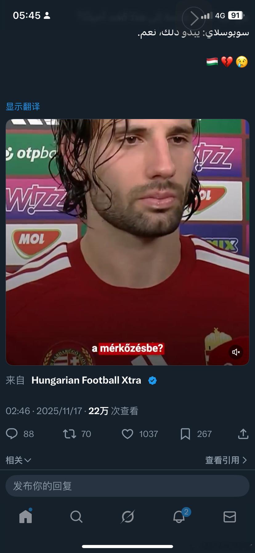 索博斯洛伊在匈牙利梦碎世界杯预选赛后采访问:"此刻你有多心痛?"索博斯洛伊:"非常,非常痛。"问:"能理性分析这场失利吗?"索博斯洛伊:"不能。"问:"足球有时竟如此不公吗?"索博斯洛伊:"看来是的。"