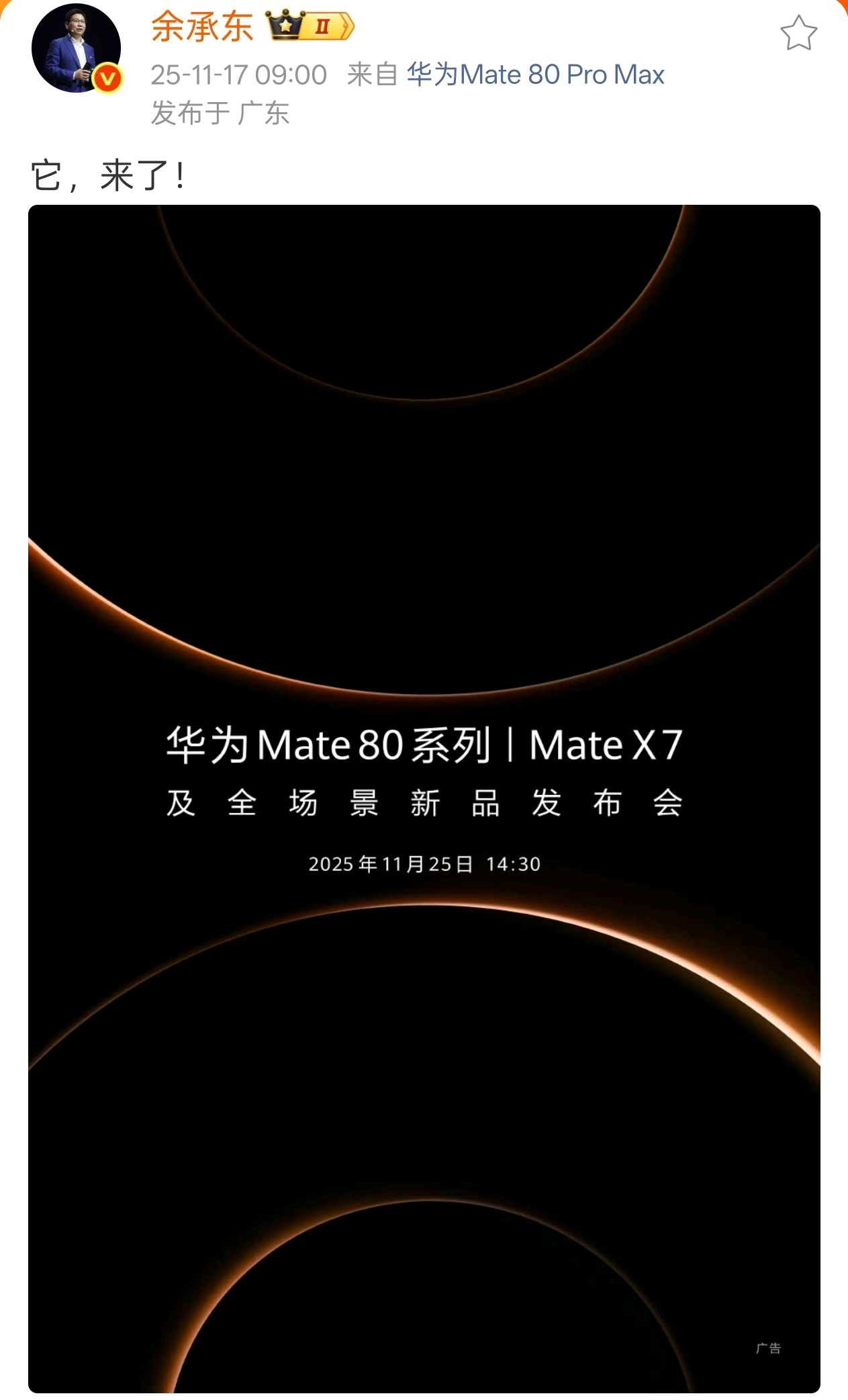 华为是真有钱啊,听别的博主老师说11月25号Mate80系列发布会,28号鸿