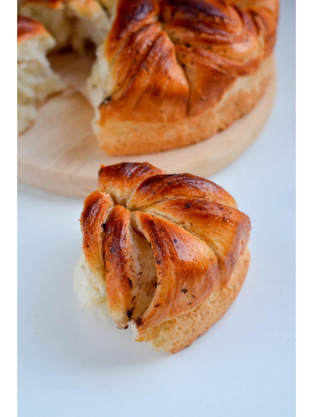 ---【蓝莓酱千层面包】--- 【材料】 高筋面粉250克 鲜酵母8克 盐3克 白糖20克 淡奶油40克 牛奶175克 黄油20克 蓝莓酱适量 表面刷蛋液少许 【烘烤】 中下层 上下火180/180度 22分钟 同款视频在主页