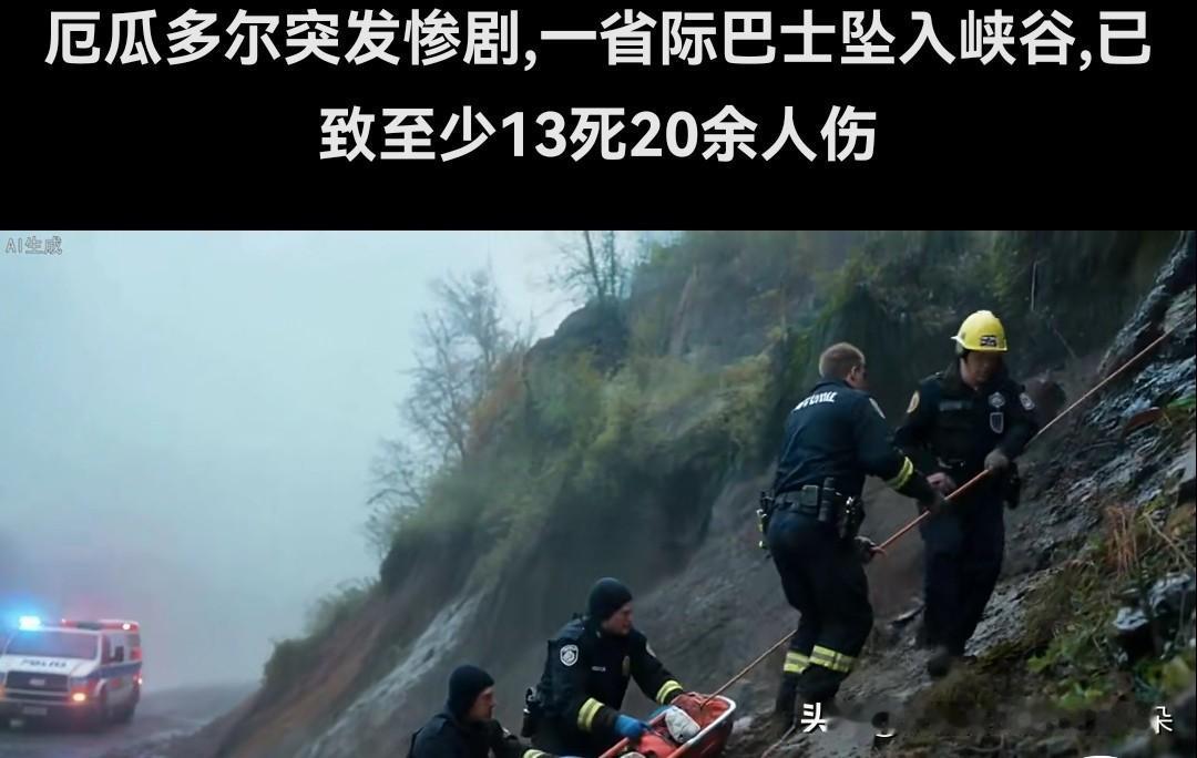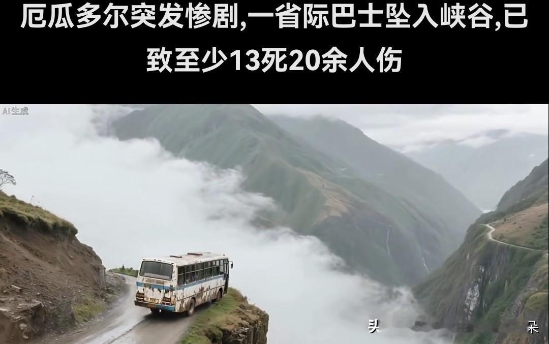 🔥【突发!厄瓜多尔巴士坠峡谷,至少13人遇难】🔥 ⏰ 时间: 当地时间11月16日13:00(北京时间11月17日2:00) 📍 地点: 厄瓜多尔中部玻利瓦尔省西米亚图格地区 💥 事件: 一辆省际巴士在行驶中突然失控,坠入峡谷,造成至少13人死亡、20余人受伤,死伤人数可能进一步上升! 🚨 事故现场直击 - 巴士在首府瓜兰达通往乡村的公路上行驶时,突然侧翻并滚下山坡(另一说法为直接坠入峡谷),车辆损毁严重。 - 当地警察、消防、医疗团队已紧急赶往现场,全力救援伤者并调查事故原因。 - 由于地形险峻,救援难度较大,部分伤者情况危急。 🔍 事故原因初步推测 厄瓜多尔交通事故频发,常见原因包括: ✅ 路况复杂(山路多、弯道陡峭) ✅ 车辆老旧(巴士车况不佳) ✅ 司机超速或操作不当(可能是失控主因) (此前8月27日,厄瓜多尔另一省也发生过巴士坠崖事故,造成9人死亡……) ❤️ 关注后续 - 死伤人数可能更新,救援仍在进行中。 - 当地政府或将加强山区巴士安全监管。 📌 提醒: 近期前往厄瓜多尔山区的旅客,务必选择正规交通工具,注意行车安全! 厄瓜多尔 巴士事故 交通事故 国际热点 (综合新华社、央视、当地媒体报道)