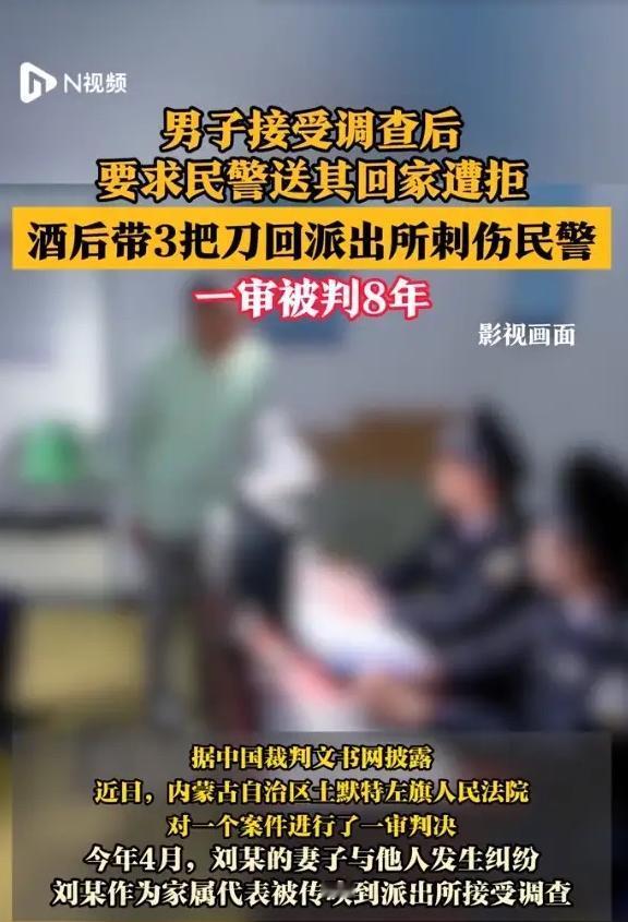 内蒙一男子被警察叫去派出所配合调查,结束后因为太晚希望警察送他回家,遭拒后和警察吵了一架,回家后喝了一碗酒越想越气,拿着刀冲去派出所,要和警察“同归于尽”……[嘘] 那个深夜,内蒙古的刘先生因家中事务被请到派出所做笔录,结束时已过午夜,公交车早已停运,他请求民警送他回家,但这个要求超出了警务范围,未能如愿。 被拒绝后,刘先生情绪激动,在派出所里与民警发生口角,经过劝说,他独自离开,然而事情并未结束,回到家中,他喝下不少酒,血液酒精浓度高达142mg/100ml,处于严重醉酒状态。 在酒精的刺激下,他竟带着一把刀返回派出所,径直走向刚才接待他的民警,民警迅速躲闪,但背部仍被刀刃划伤,后经鉴定为轻伤二级,在场其他警员立即行动,将刘先生控制住。 法院审理此案时认为,虽然最终伤情不重,但持刀袭击正在执行公务的民警,主观恶意明显,行为性质恶劣,最终,刘先生因故意杀人未遂罪,被判处八年有期徒刑。 法律对袭击执法人员的行为有着严格规定,即便没有造成重伤,但考虑到行为本身的危害性,法律也会从严惩处,这既是为了保护执法人员的安全,也是维护法律的权威。 看了内蒙古这位刘先生的新闻,评论区真是炸开了锅。 “这可真是‘一时冲动,八年牢狱’的真实写照啊!为了一口气,搭进去八年,这代价也太沉重了。” “警方按规定办事没错,但大晚上的,对一个协助调查的群众,是不是能更人性化一点?帮忙叫个车或者联系下家属,或许就能避免冲突。” “警察又不是滴滴司机,每个人都有自己职责,不能道德绑架,协助调查是公民义务,怎么能要求额外服务呢?” “酒这东西,真是‘怂人’的胆,‘高人’的劲啊!平时老实巴交,几杯下肚就敢提刀闯派出所了。” “别看只是轻伤,但持刀袭击警察,性质非常恶劣,判故意杀人未遂,是考虑到他的主观意图和行为的严重社会危害性,这个判决有警示作用。” “这件事最大的教训就是,成年人一定要学会给情绪‘刹车’,感觉要失控的时候,先冷静十分钟,别让怒火牵着鼻子走。” 您觉得在这起事件中,最值得人们引以为戒的教训是什么?是情绪管理、酒精危害,还是对法律缺乏敬畏?或者您有其他的看法?欢迎在评论区分享您的观点,我们一起探讨。 信息来源:澎湃新闻