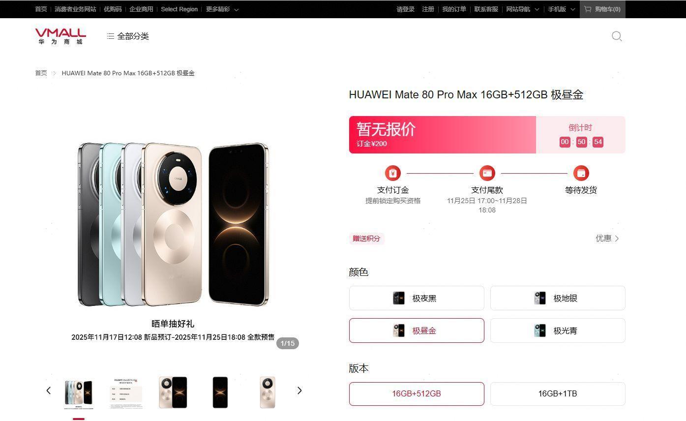 华为Mate的粉丝们久等了!,线下购机更有至高300元以旧换新额外补贴和12期分期免息。华为Mate 80系列全系直屏与创新设计语言极具辨识度。超大杯正式定名华为Mate 80 Pro Max机型,这似乎预示它将是“六边形战士”,在性能、影像、通信、耐用等方面均无短板,实现Mate科技创新基因的极致进化。还看到新款配色极昼金、极光青、极地银、极夜黑都好高级啊,你还有哪些期待?赶紧评论区一起聊聊。