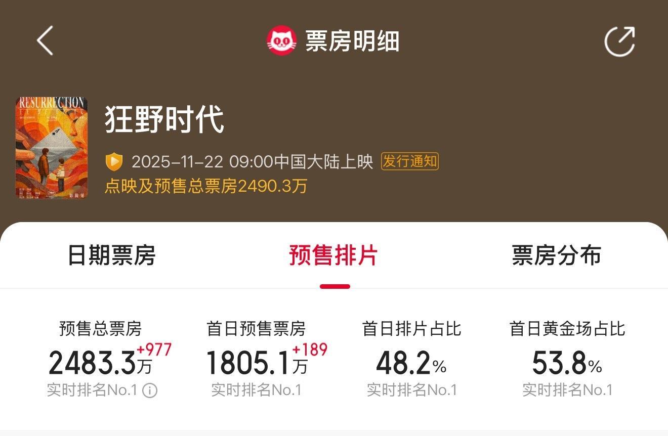 易烊千玺《狂野时代》预售票房,第一天已经接近2500万了,拿到影帝后的第一部片