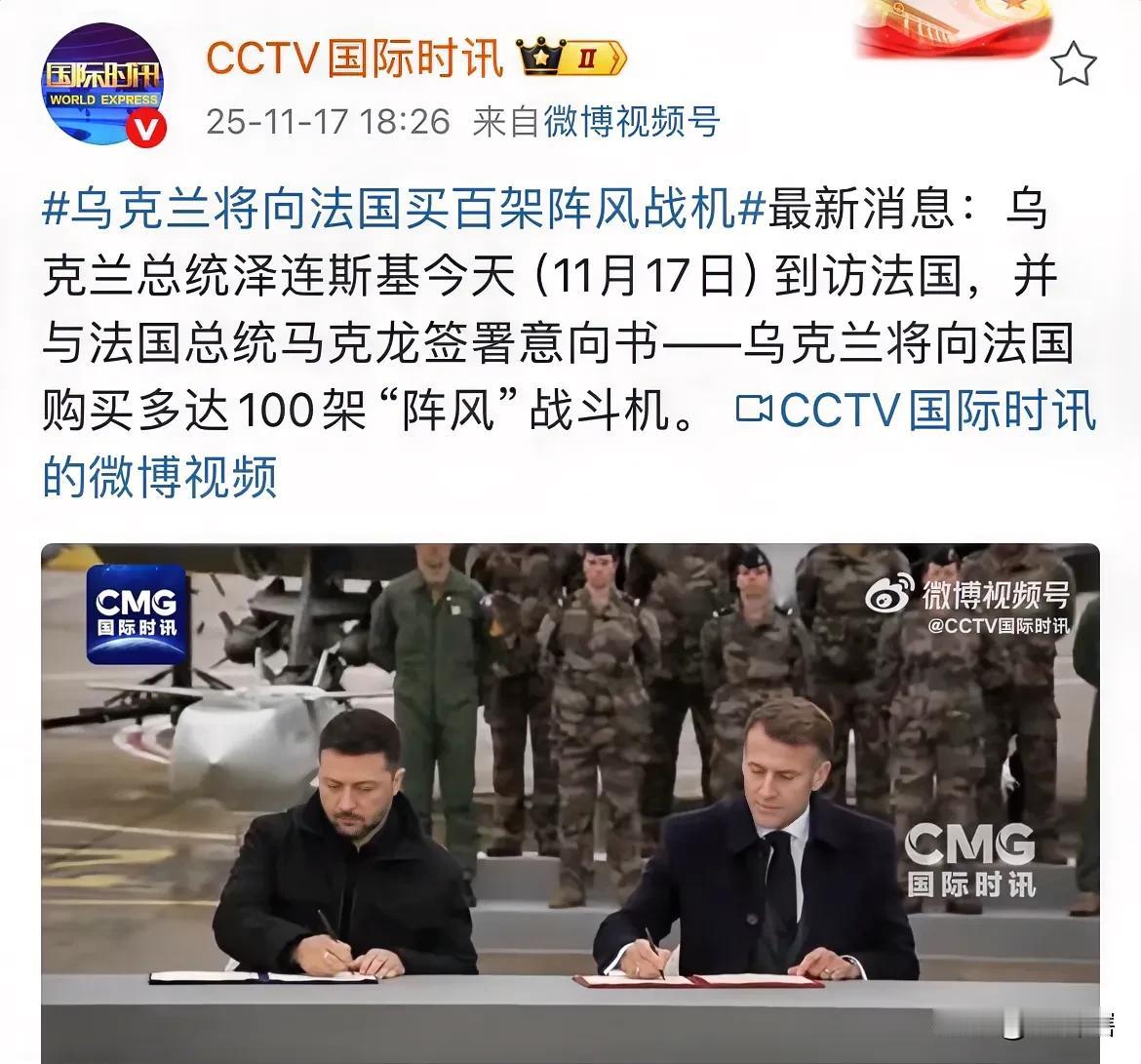 【法国将卖100架‘’阵风‘’战斗机给乌克兰】 综合媒体消息,泽连斯基于17日抵达法国巴黎进行国事访问,并与法国总统马克龙签署了购买100架‘’阵风‘’战斗机意向书。 据悉,法国总统马克龙除了承诺向乌克兰提供战斗机外,还将提供新型Aster 30地对空导弹以加强乌克兰防空能力。 不过,‘’阵风‘’战斗机每架售价高达2亿美元,显然这是一笔不菲的费用,乌克兰是否能够承担有点悬。